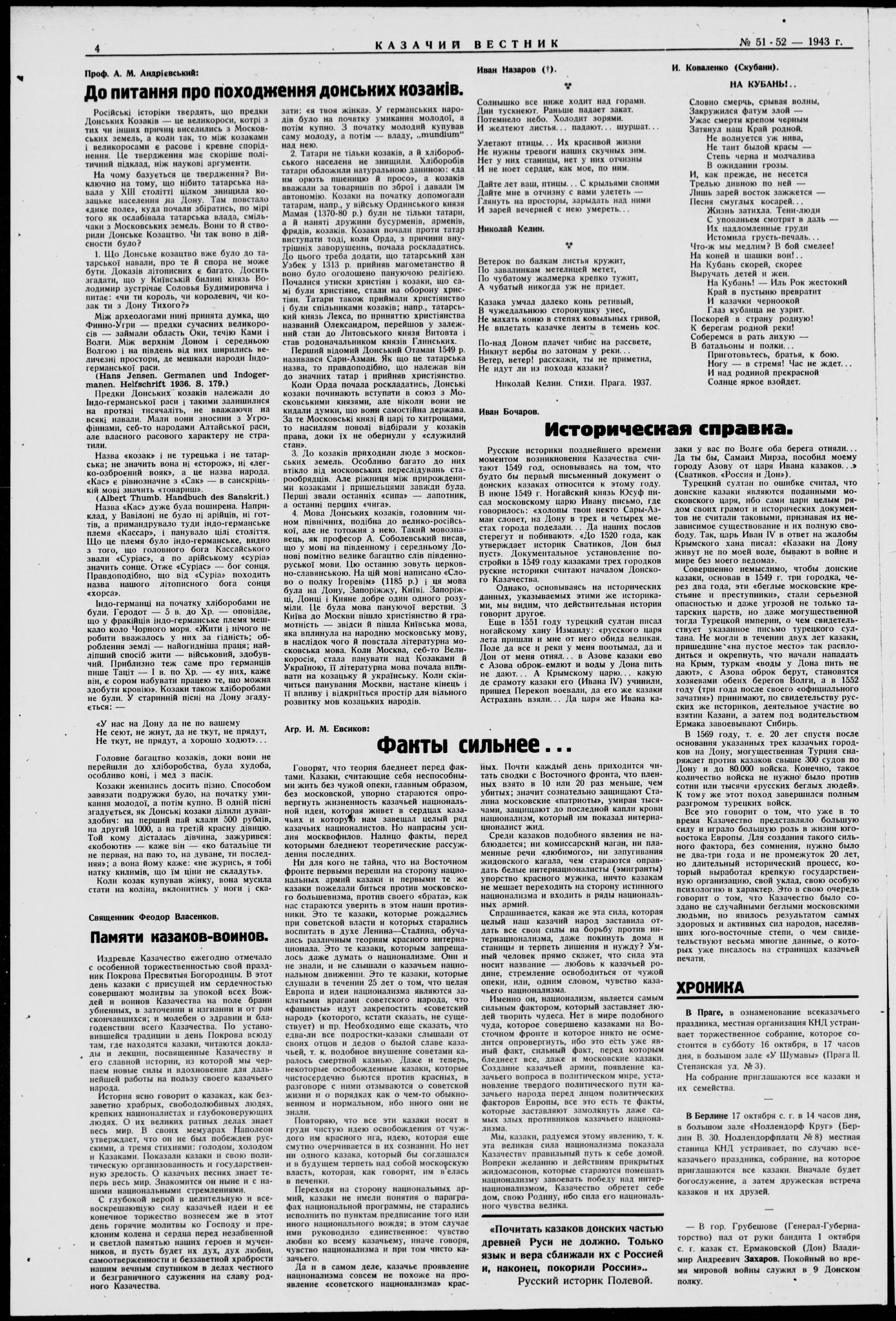 * Datum vydání výtisku: 15.10.1943 Číslo výtisku: 51 - 52