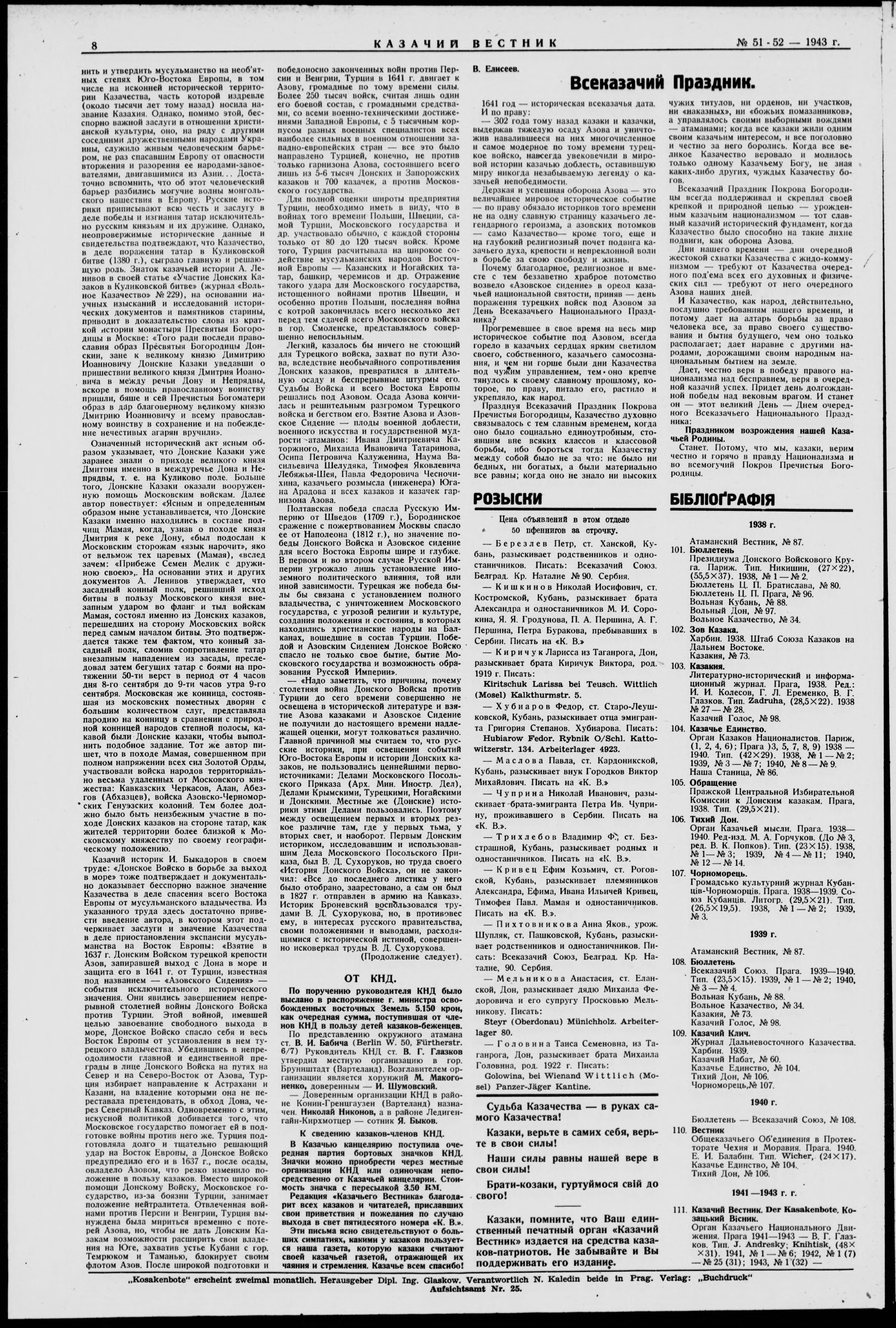 Kazachii vestnik = Kozácky věstník = Der Kosakenbote = Kozac'kyi visnyk