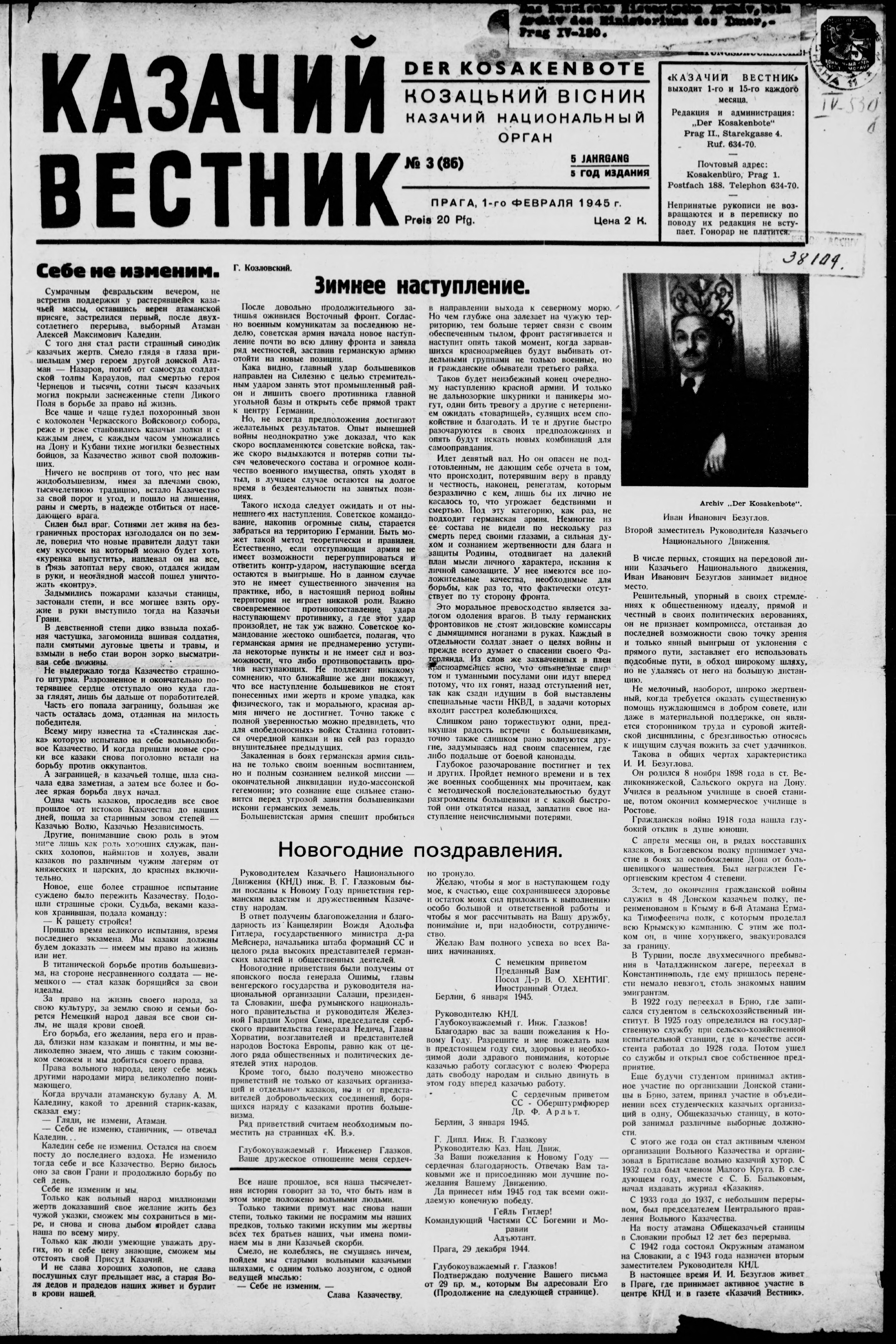 Kazachii vestnik = Kozácky věstník = Der Kosakenbote = Kozac'kyi visnyk