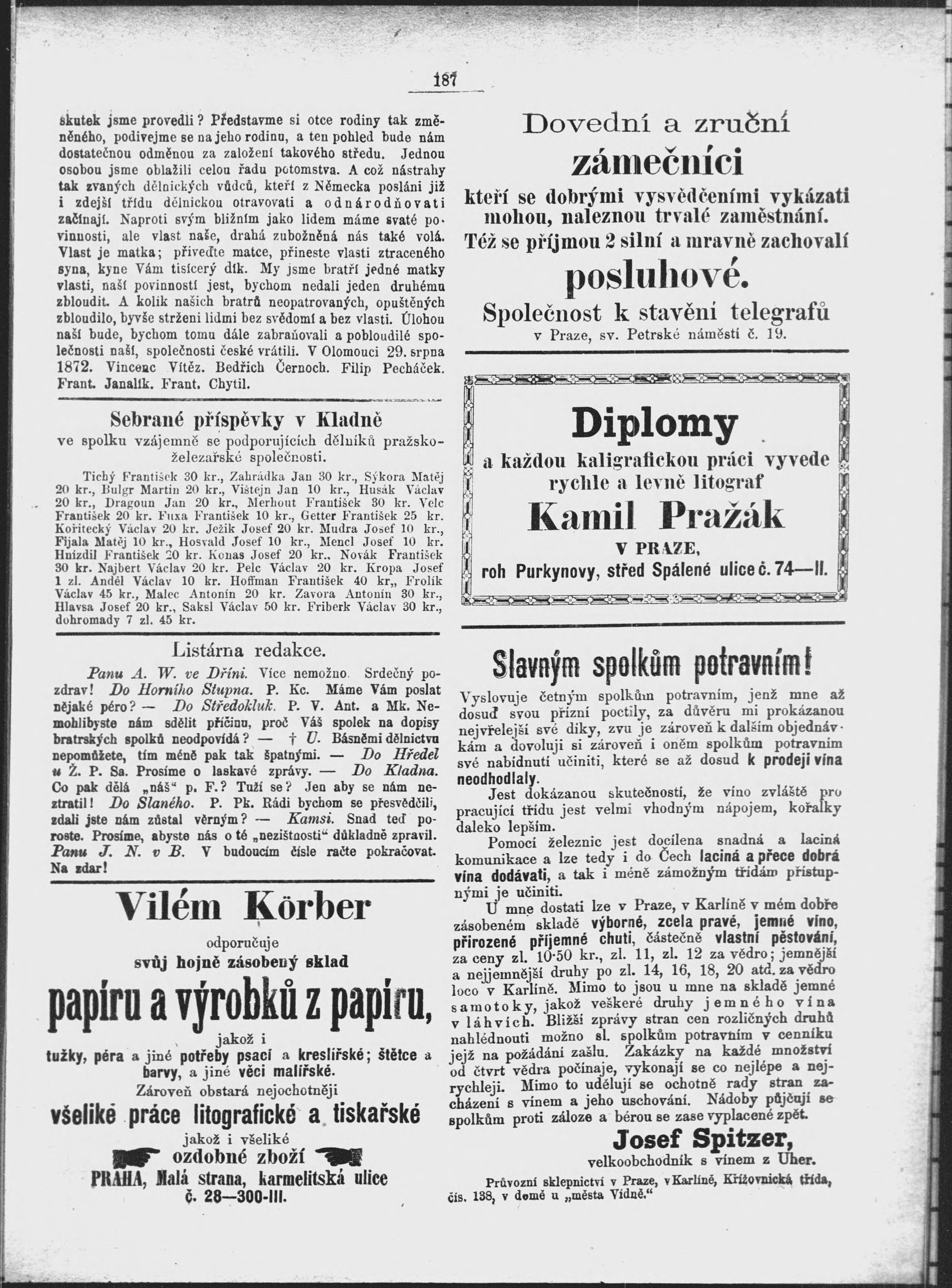 * Datum vydání výtisku: 7.9.1872 Číslo výtisku: 17