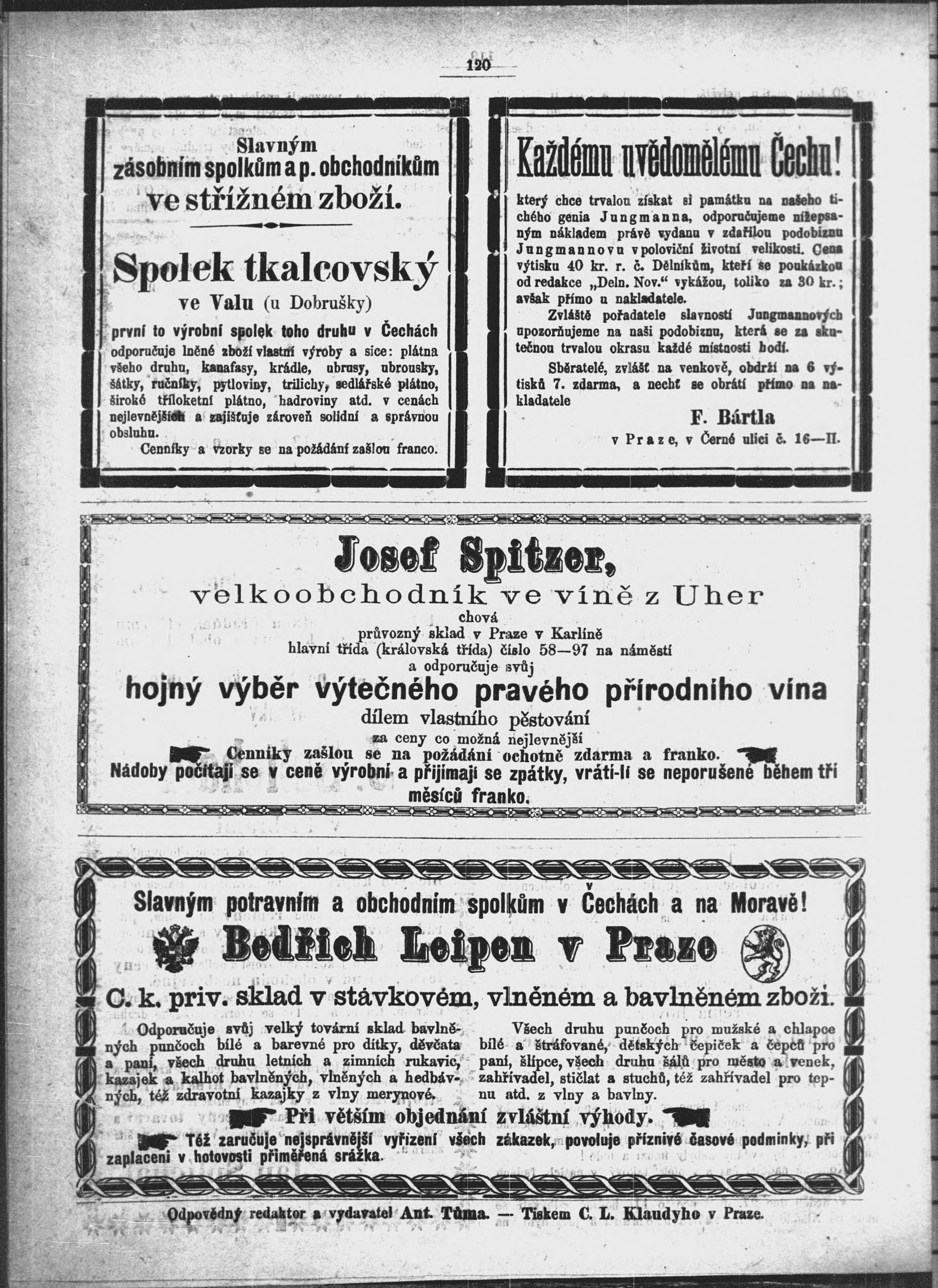 * Datum vydání výtisku: 19.7.1873 Číslo výtisku: 14 Typ výtisku: příloha