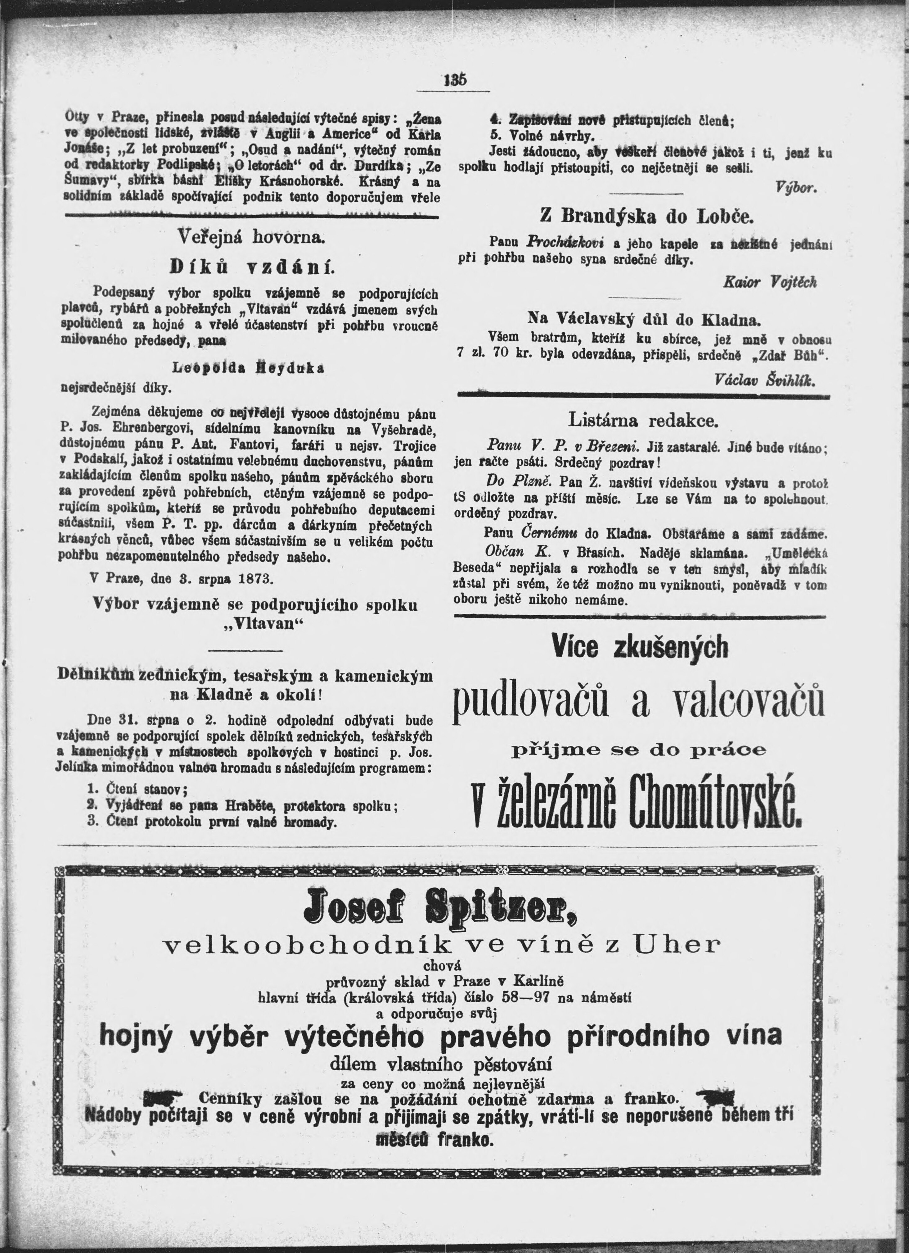 * Datum vydání výtisku: 23.8.1873 Číslo výtisku: 16