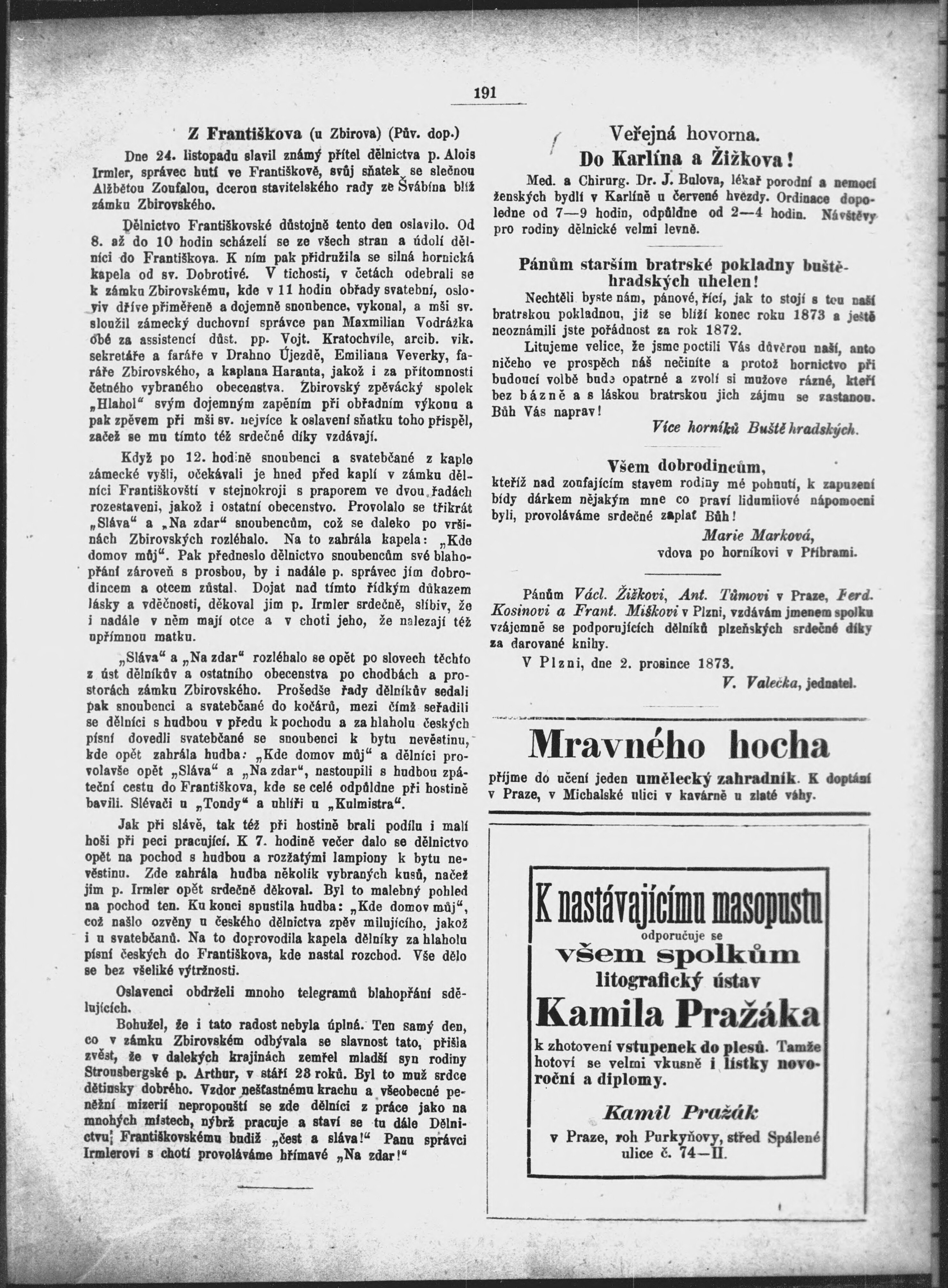 * Datum vydání výtisku: 6.12.1873 Číslo výtisku: 23