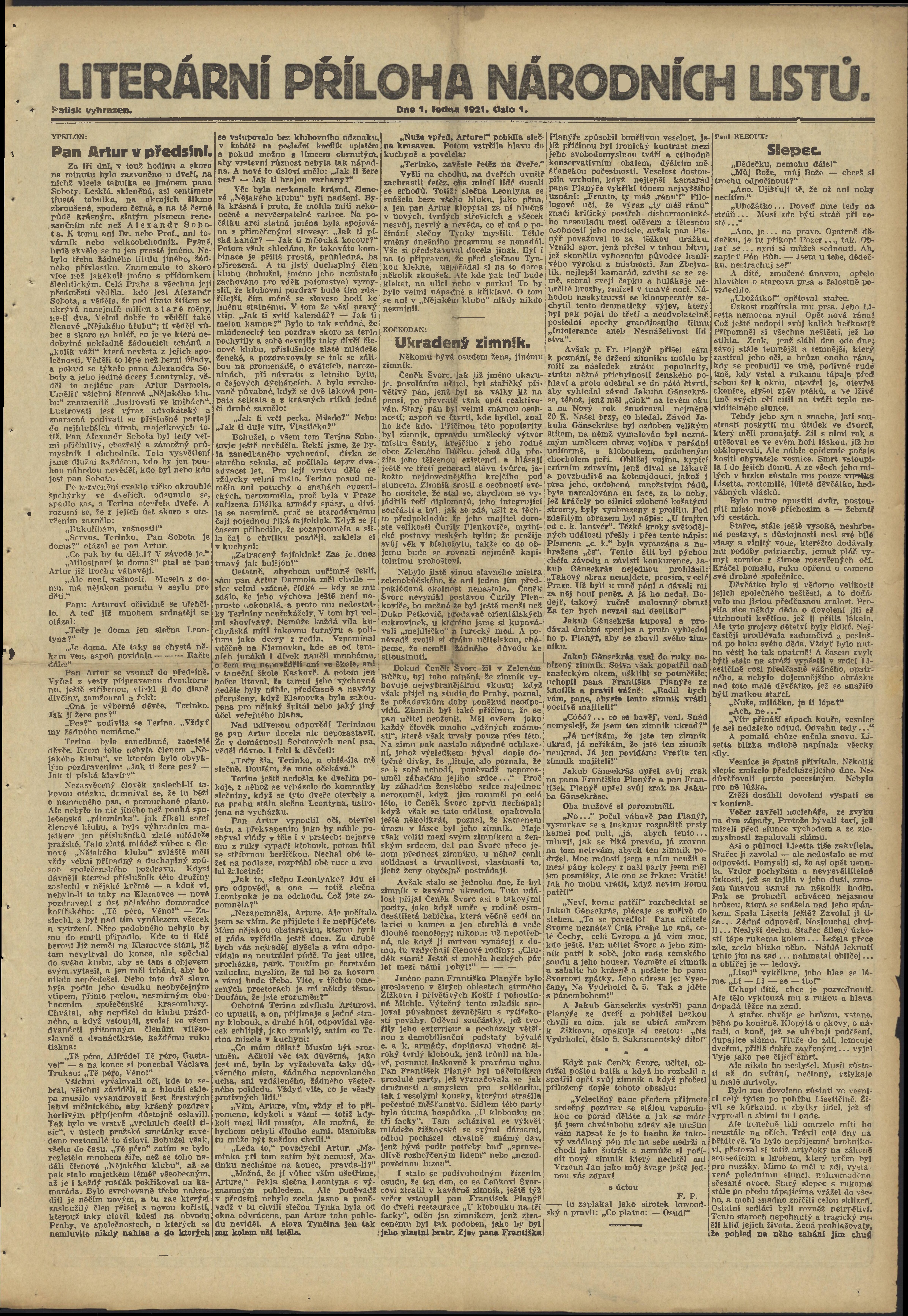 * Datum vydání výtisku: 1.1.1921 Číslo výtisku: 1 Typ výtisku: příloha