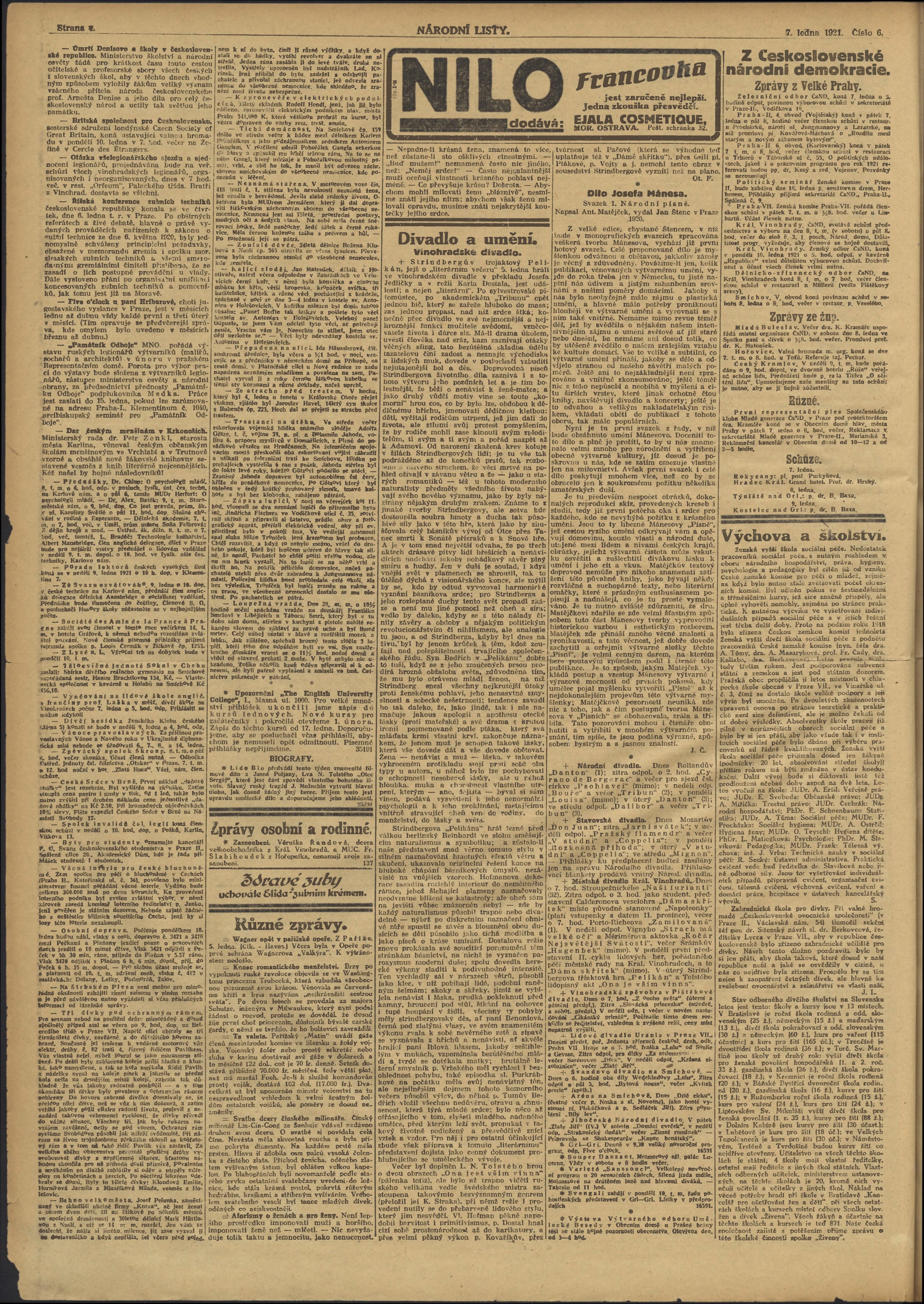 * Datum vydání výtisku: 7.1.1921 Číslo výtisku: 6 Poznámky k výtisku: ranní vydání;