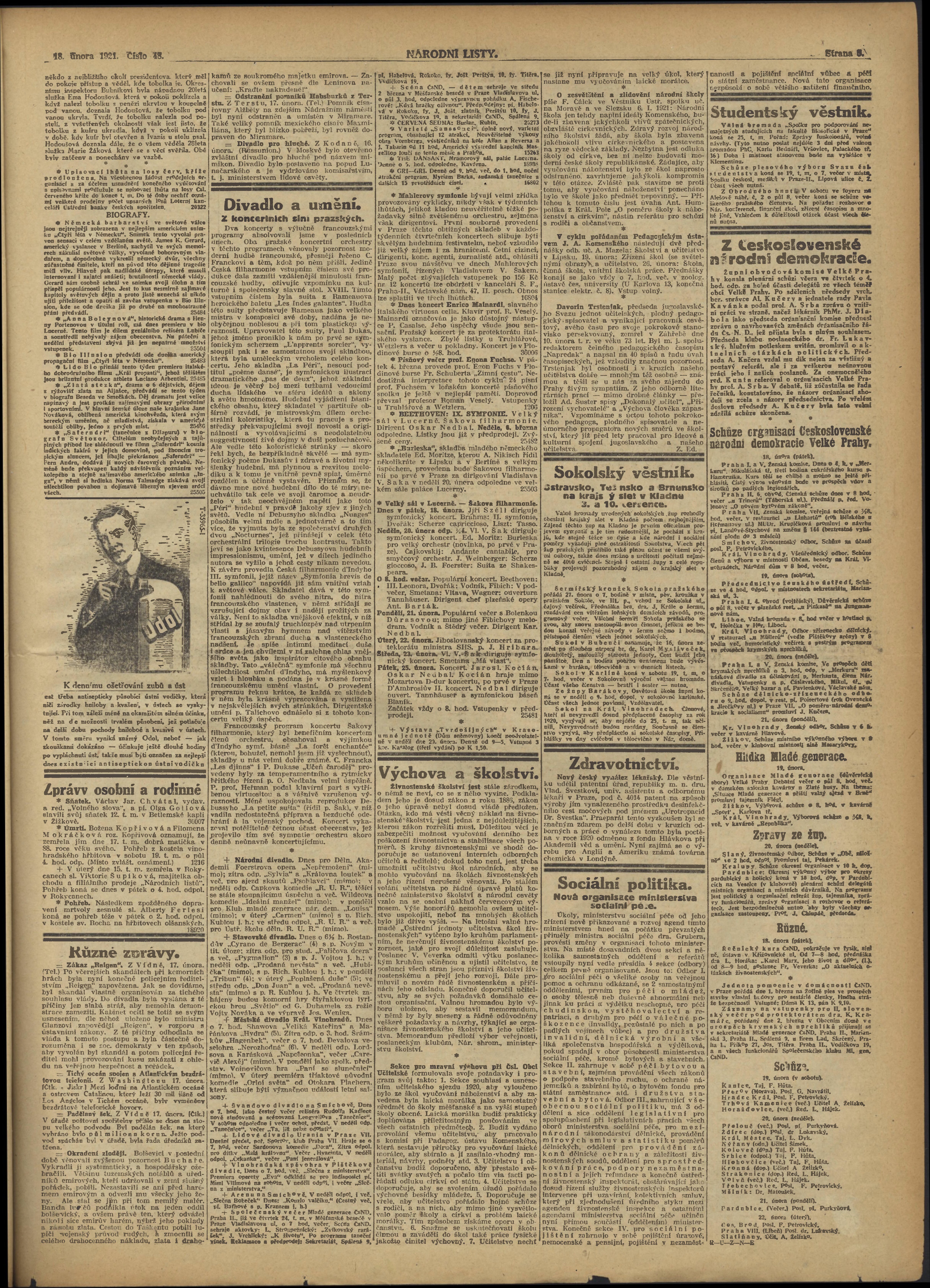 * Datum vydání výtisku: 18.2.1921 Číslo výtisku: 48 Poznámky k výtisku: ranní vydání;