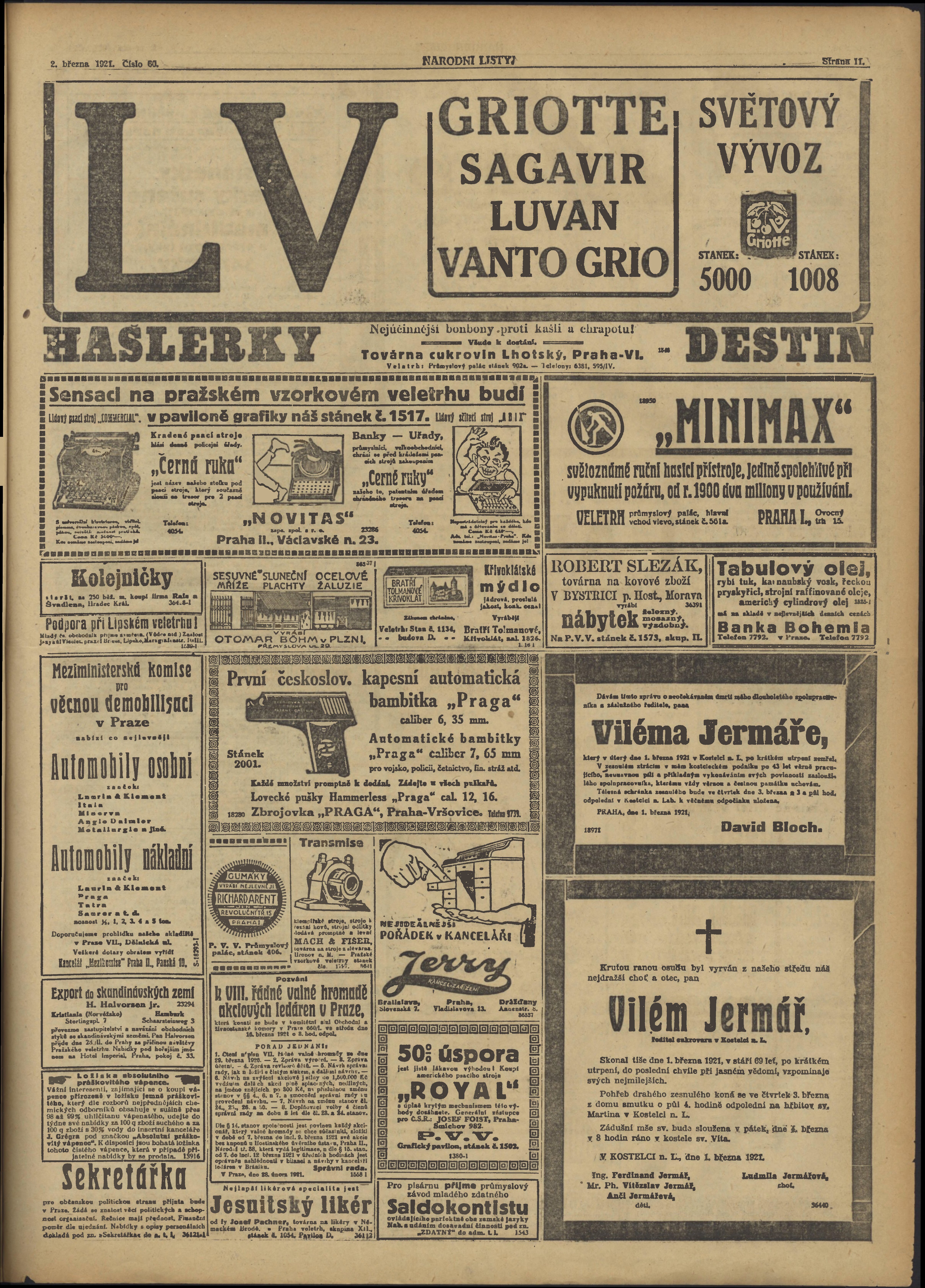 * Datum vydání výtisku: 2.3.1921 Číslo výtisku: 60 Typ výtisku: příloha