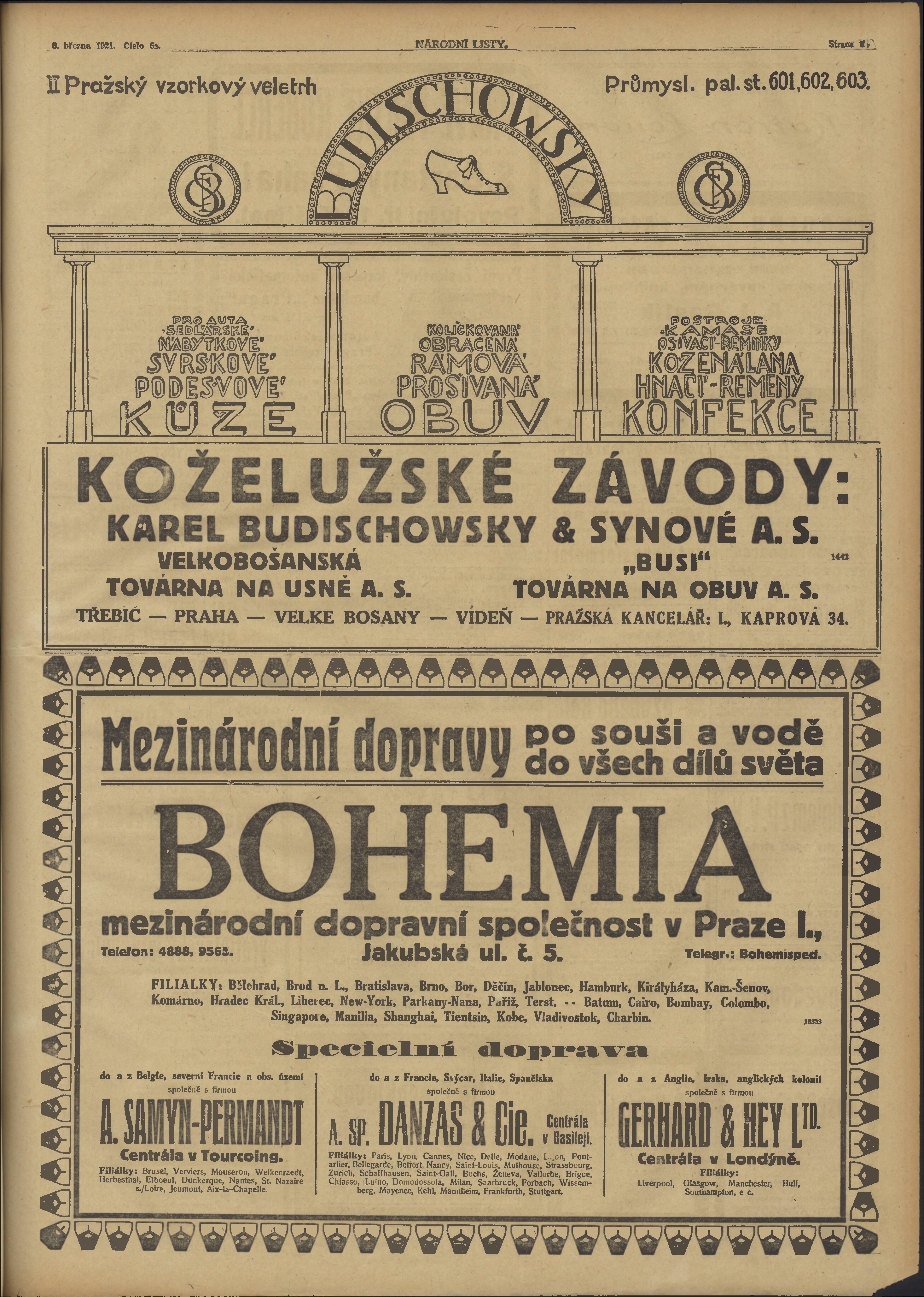* Datum vydání výtisku: 8.3.1921 Číslo výtisku: 66 Poznámky k výtisku: ranní vydání;