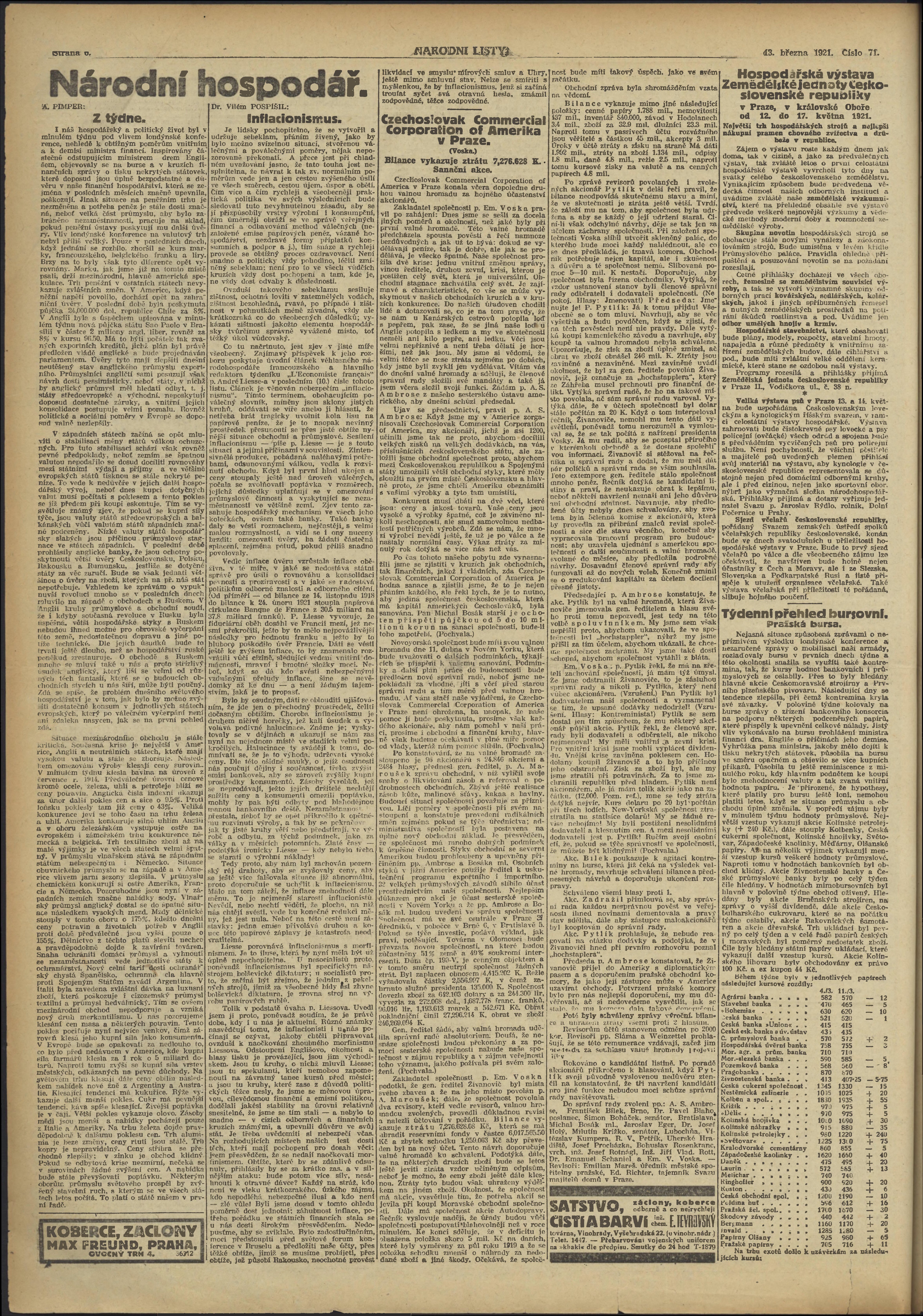 * Datum vydání výtisku: 13.3.1921 Číslo výtisku: 71 Poznámky k výtisku: ranní vydání;