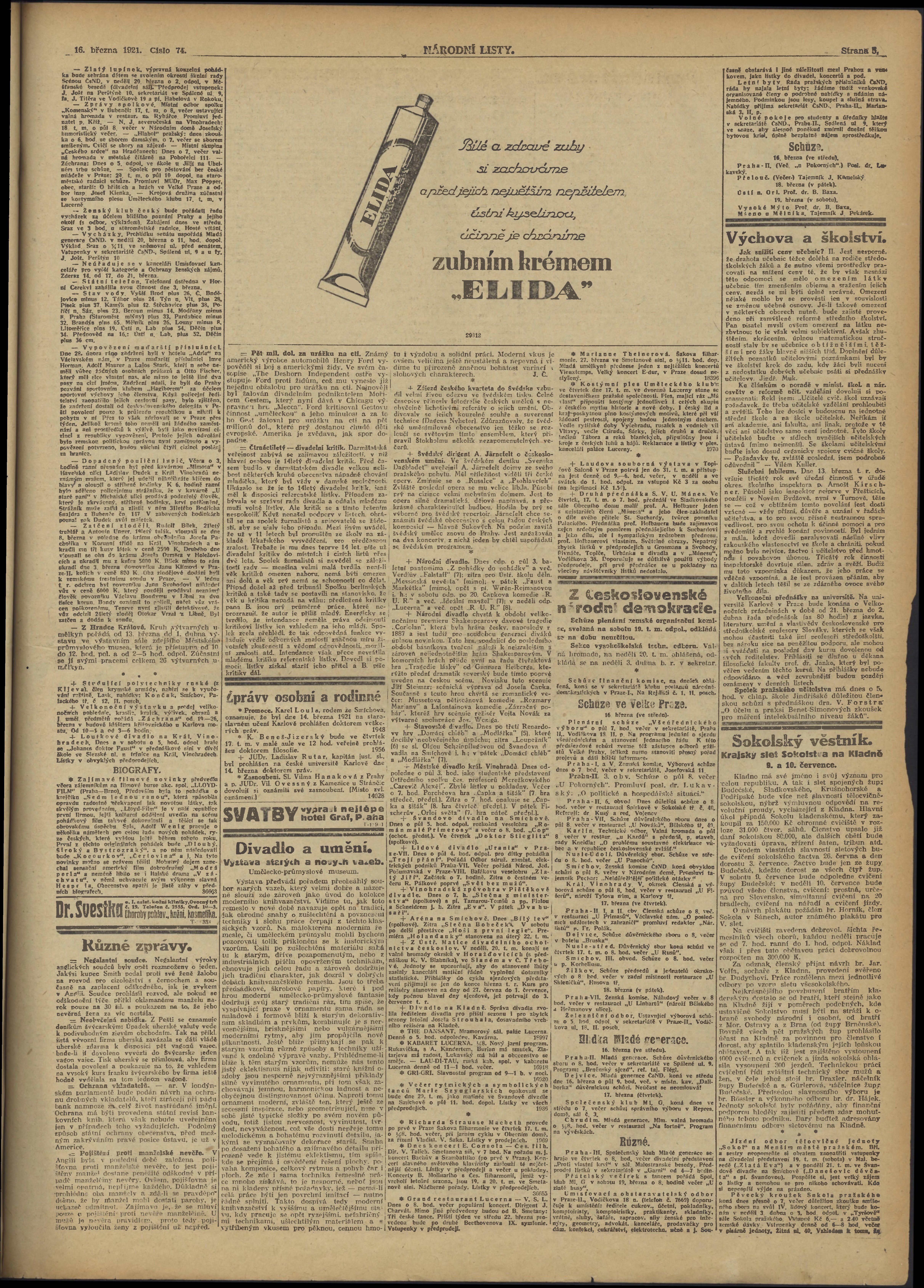 * Datum vydání výtisku: 16.3.1921 Číslo výtisku: 74 Poznámky k výtisku: ranní vydání;