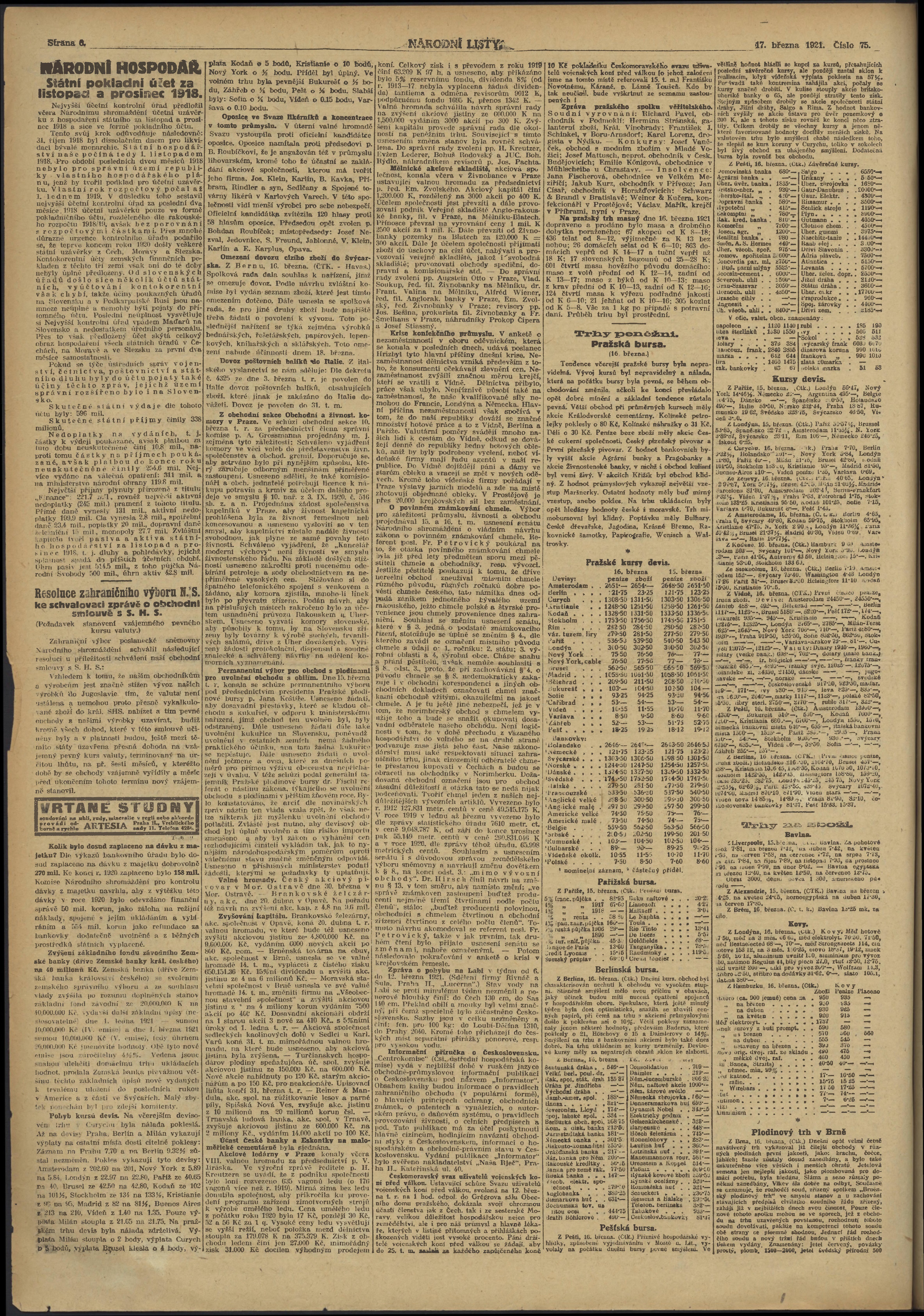 * Datum vydání výtisku: 17.3.1921 Číslo výtisku: 75 Poznámky k výtisku: ranní vydání;
