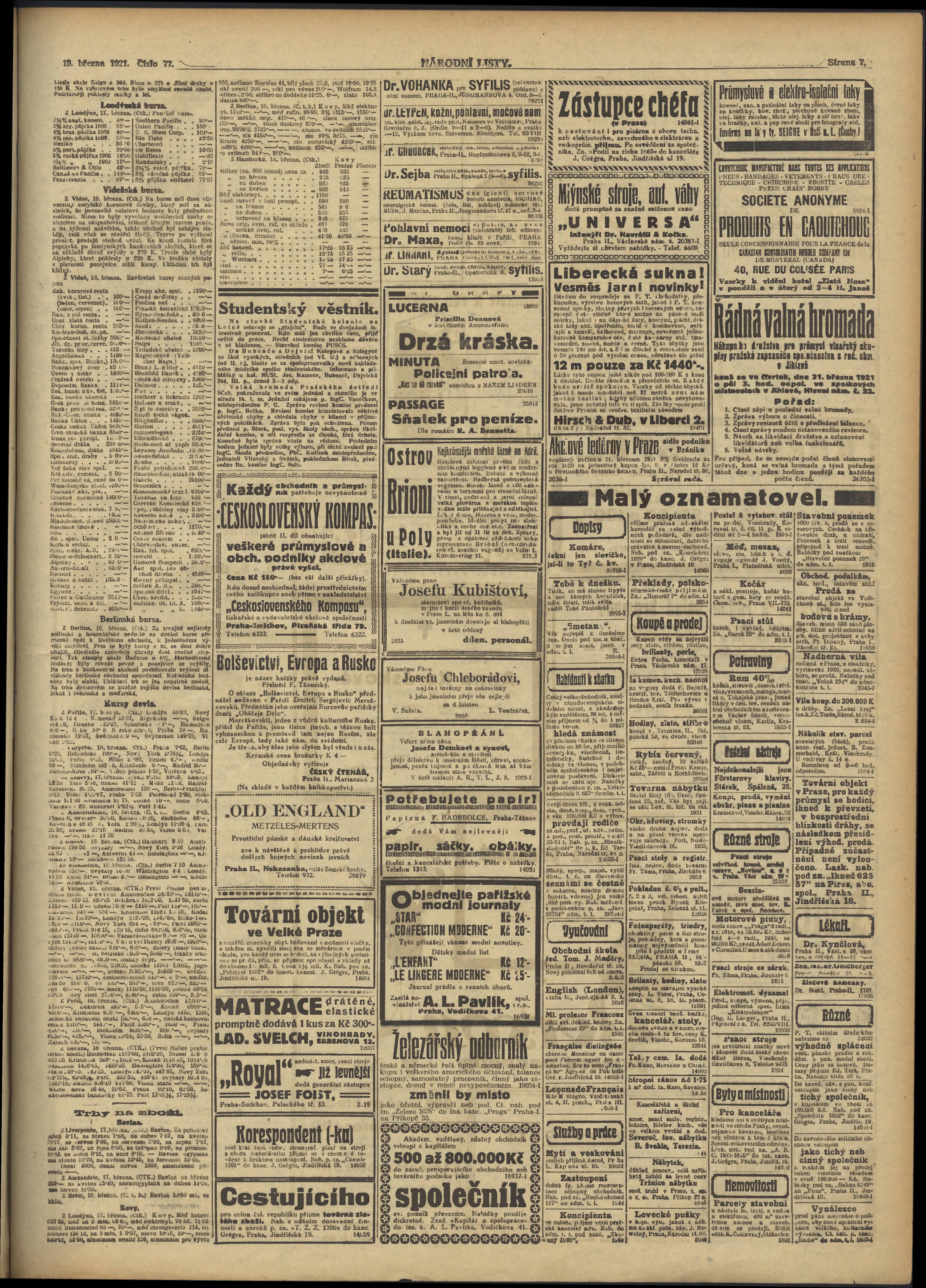 * Datum vydání výtisku: 19.3.1921 Číslo výtisku: 77 Poznámky k výtisku: ranní vydání;