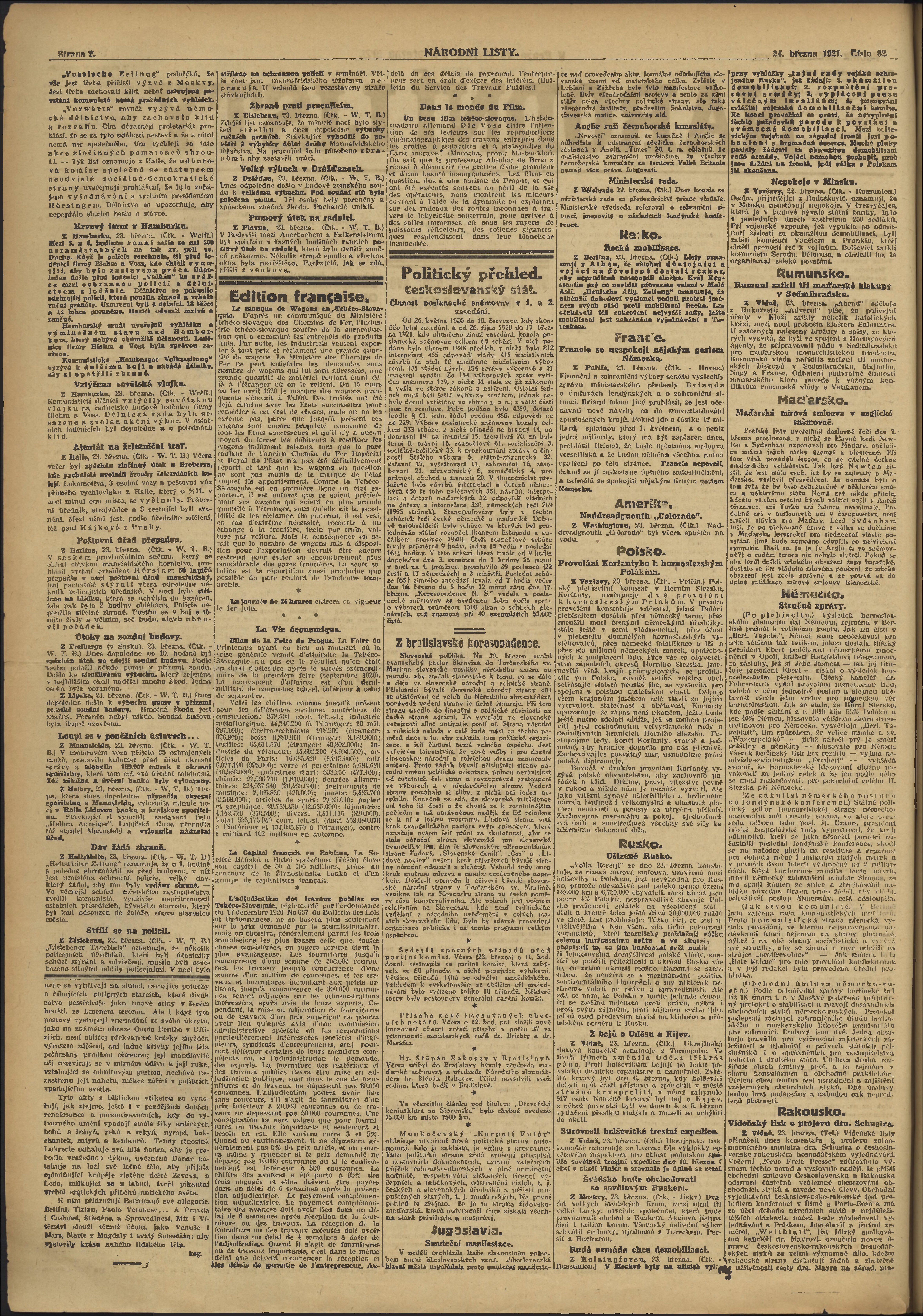 * Datum vydání výtisku: 24.3.1921 Číslo výtisku: 82 Poznámky k výtisku: ranní vydání;