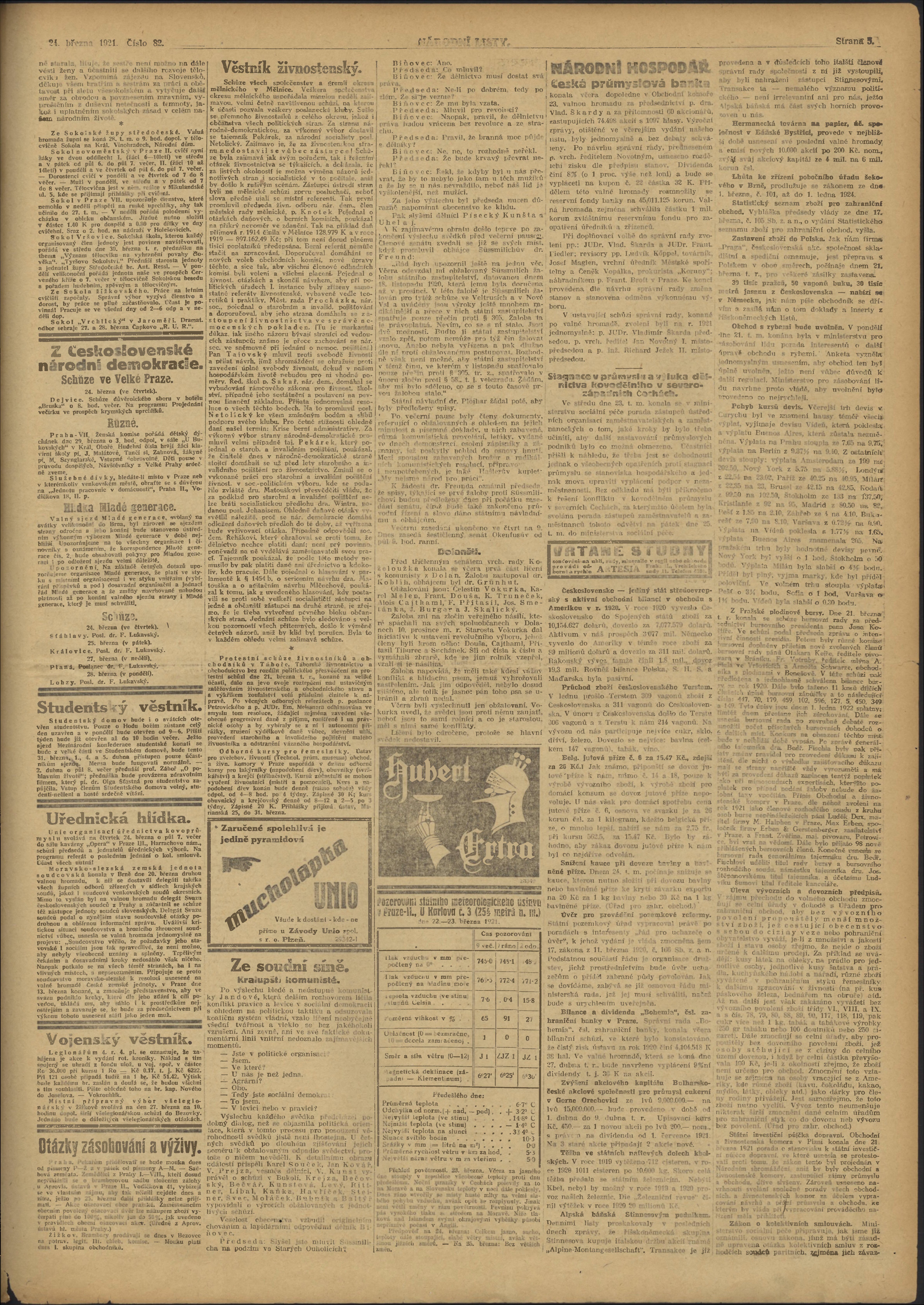 * Datum vydání výtisku: 24.3.1921 Číslo výtisku: 82 Poznámky k výtisku: ranní vydání;