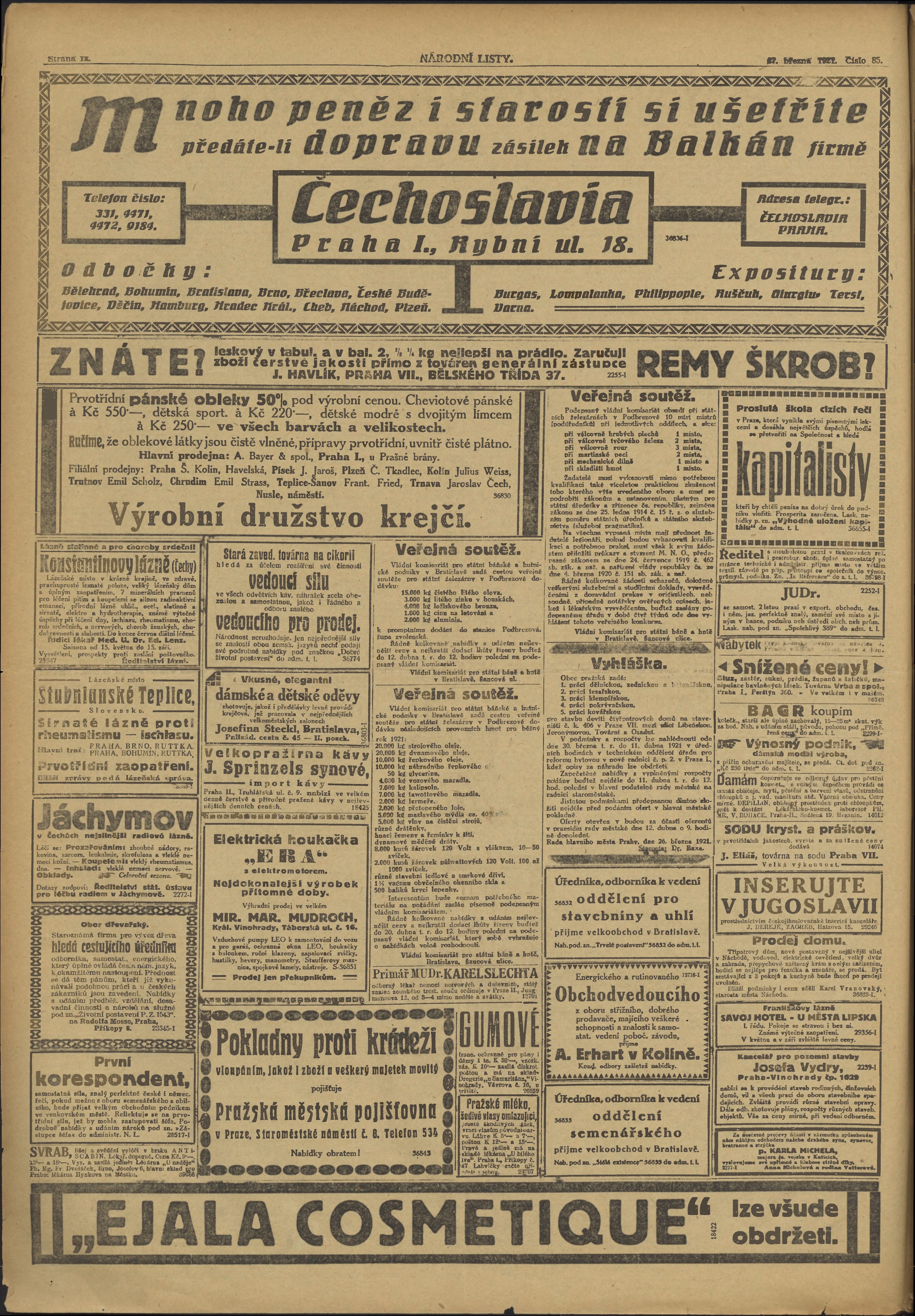 * Datum vydání výtisku: 27.3.1921 Číslo výtisku: 85 Typ výtisku: příloha
