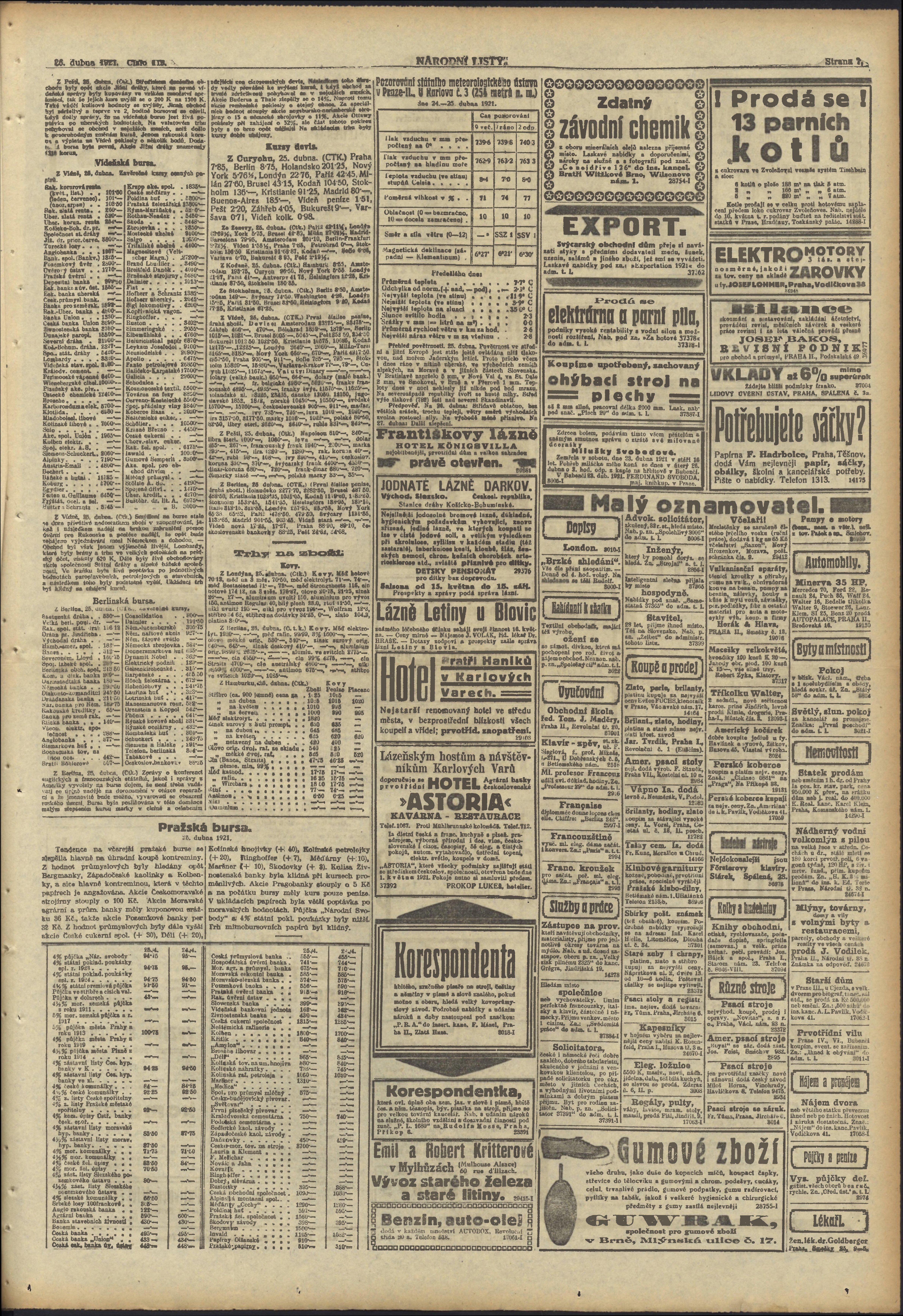 * Datum vydání výtisku: 26.4.1921 Číslo výtisku: 113 Poznámky k výtisku: ranní vydání;