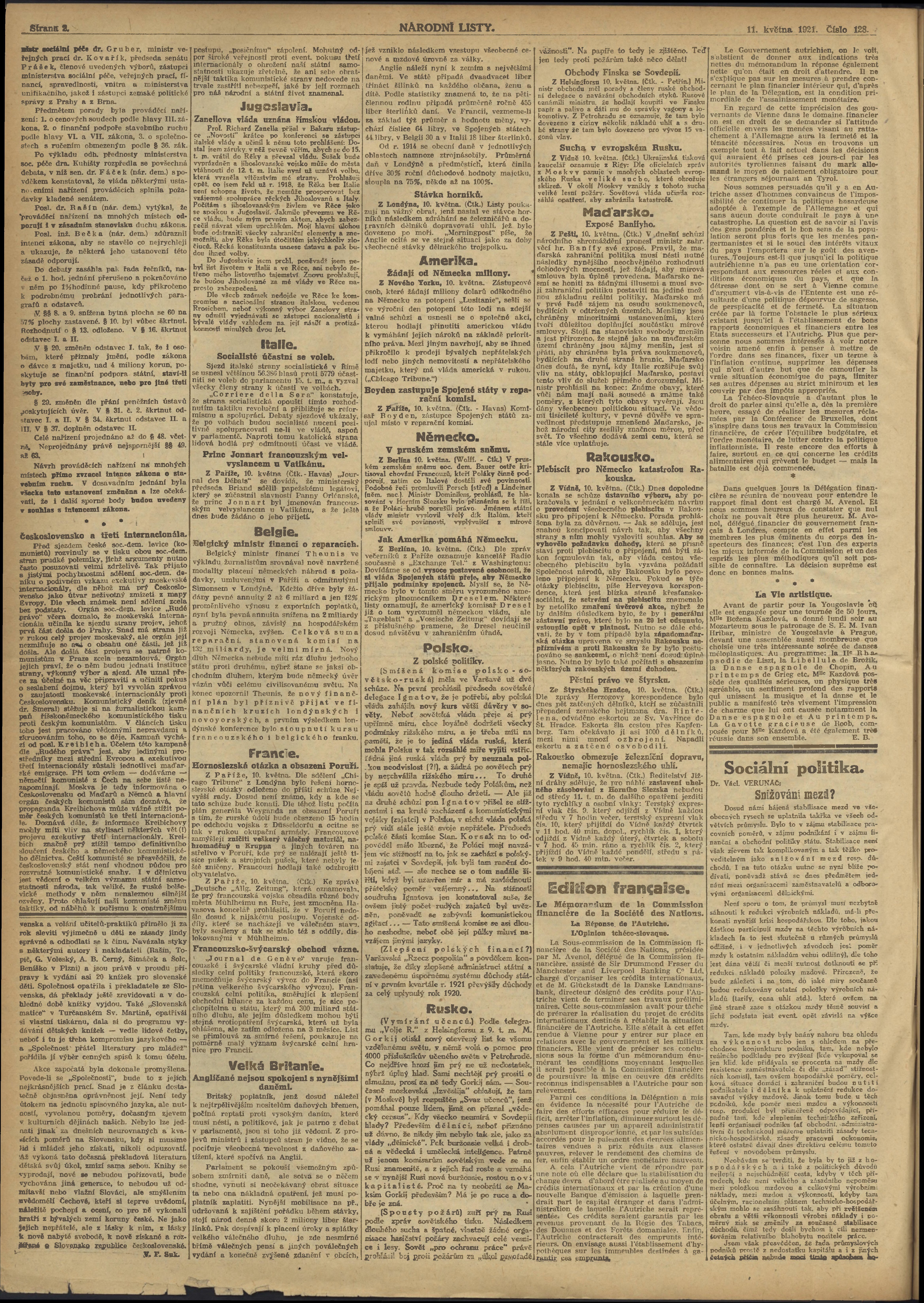 * Datum vydání výtisku: 11.5.1921 Číslo výtisku: 128 Poznámky k výtisku: ranní vydání;