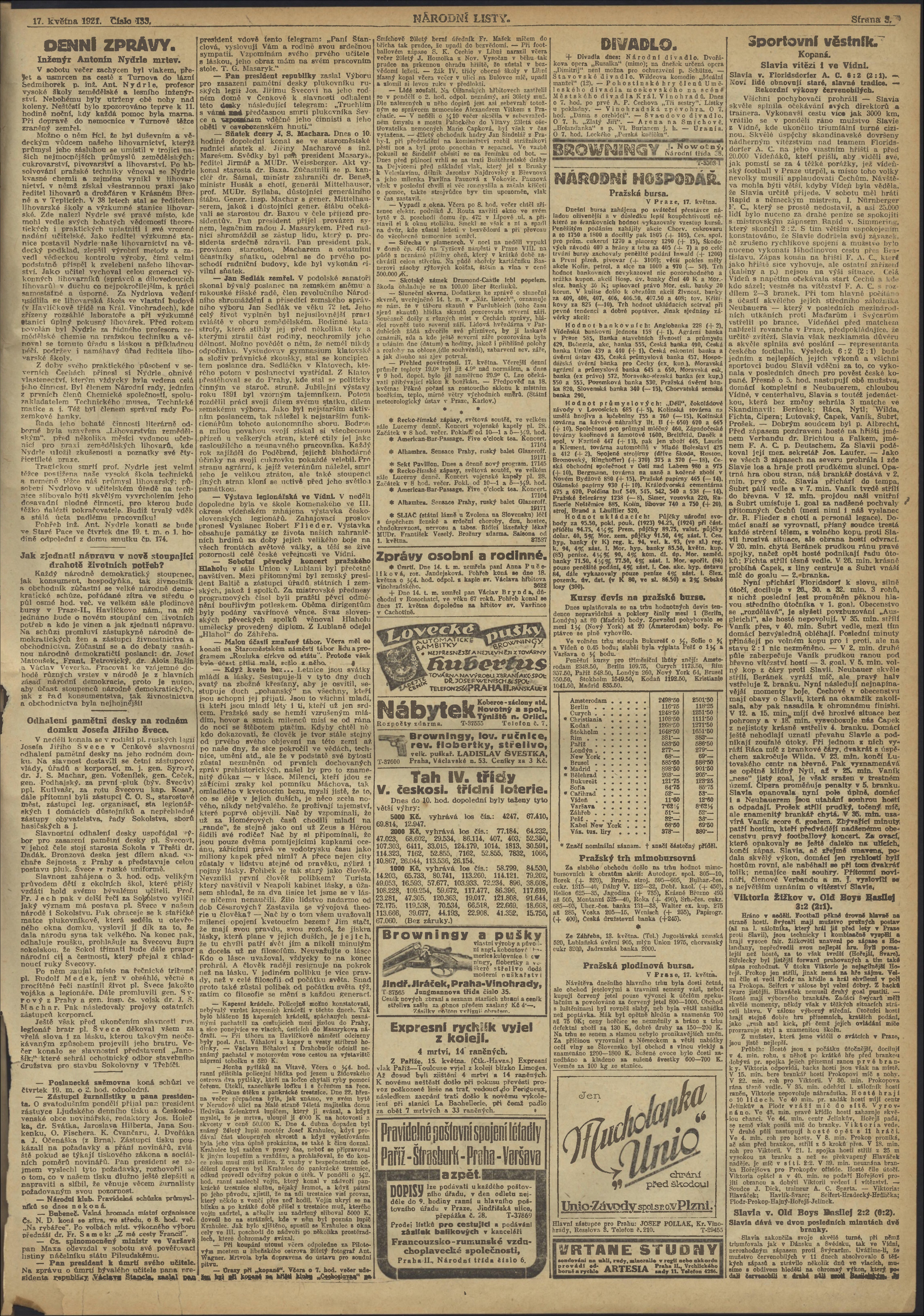 * Datum vydání výtisku: 17.5.1921 Číslo výtisku: 133 Poznámky k výtisku: večerní vydání;