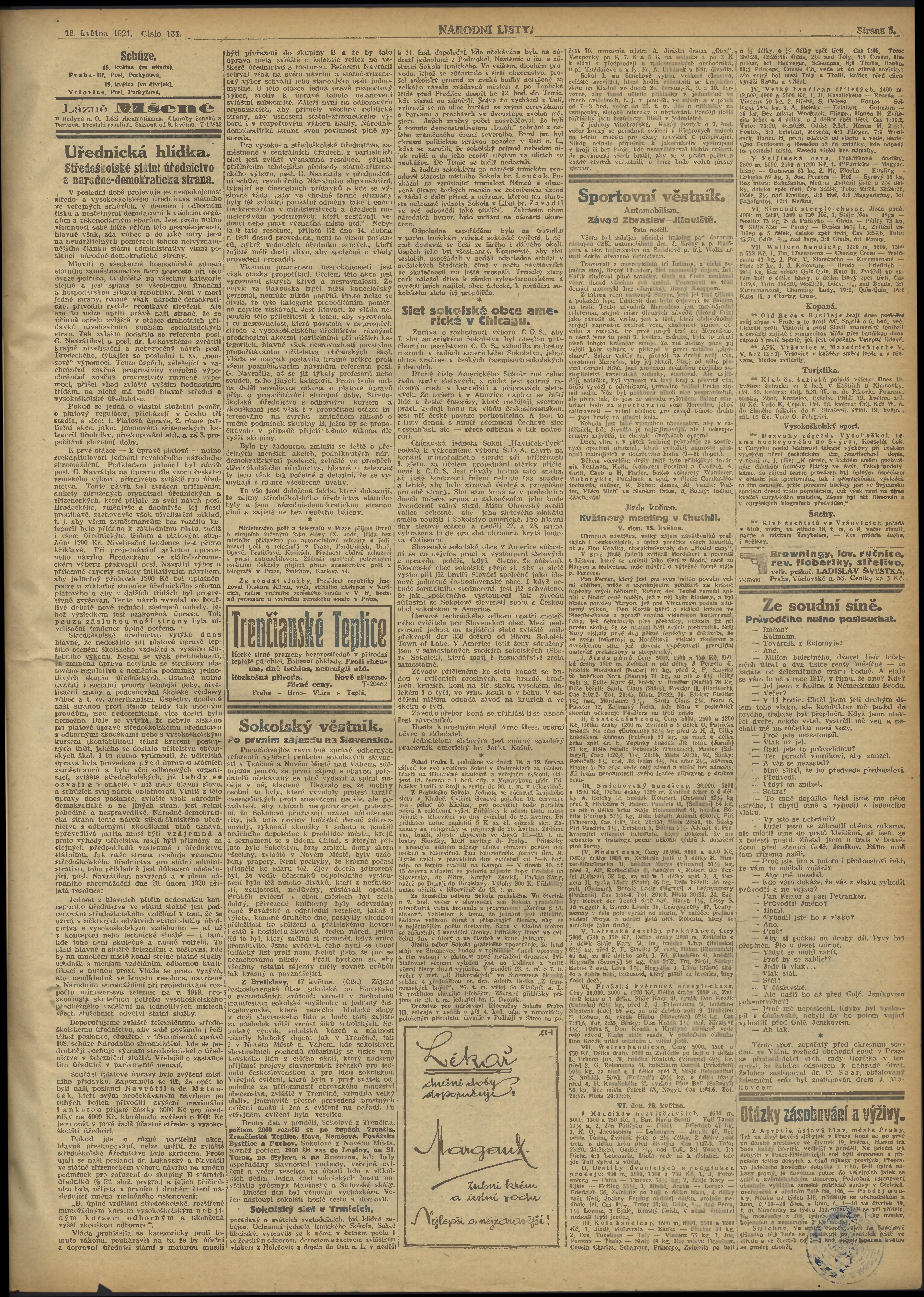 * Datum vydání výtisku: 18.5.1921 Číslo výtisku: 134 Poznámky k výtisku: ranní vydání;