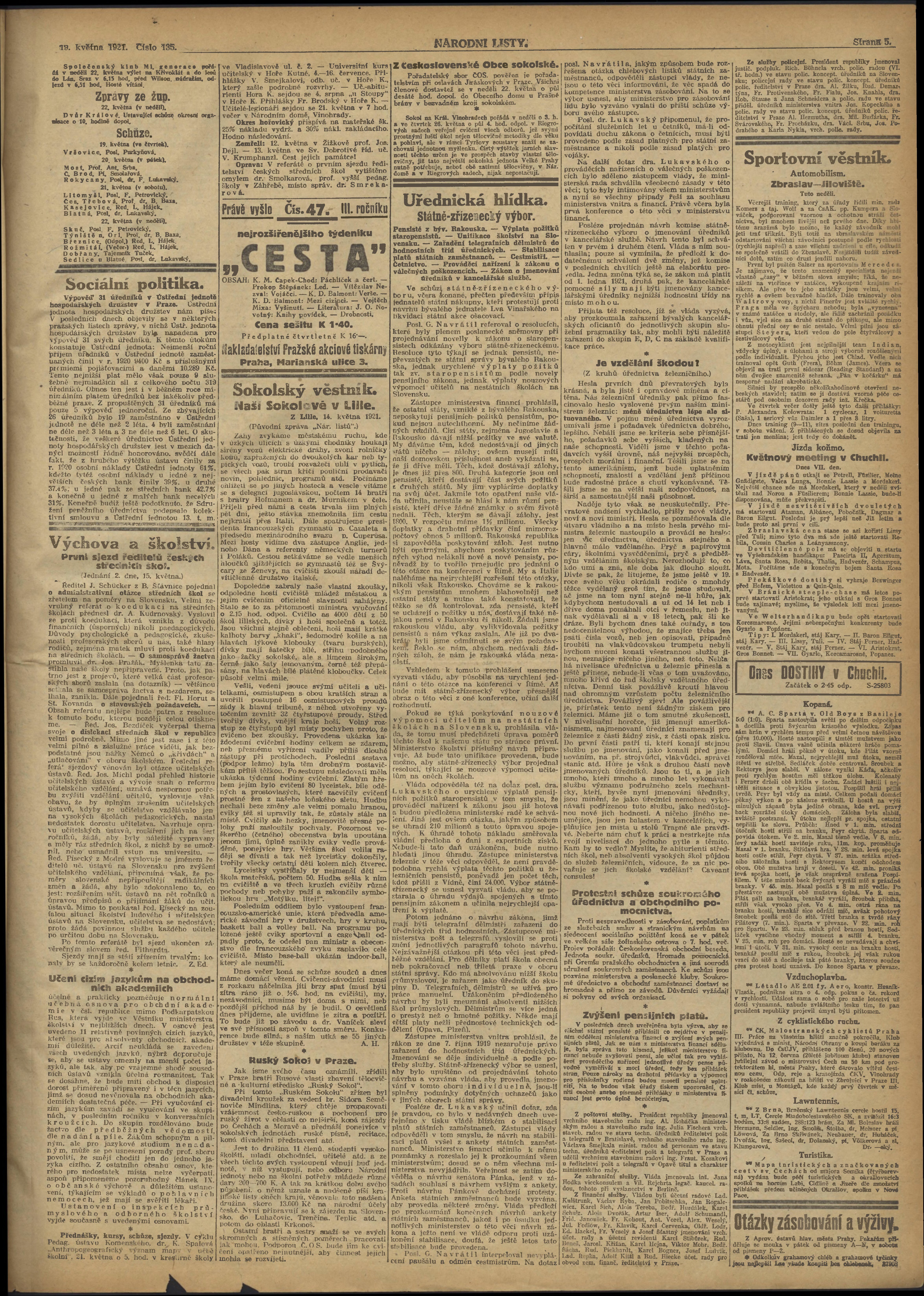 * Datum vydání výtisku: 19.5.1921 Číslo výtisku: 135 Poznámky k výtisku: ranní vydání;