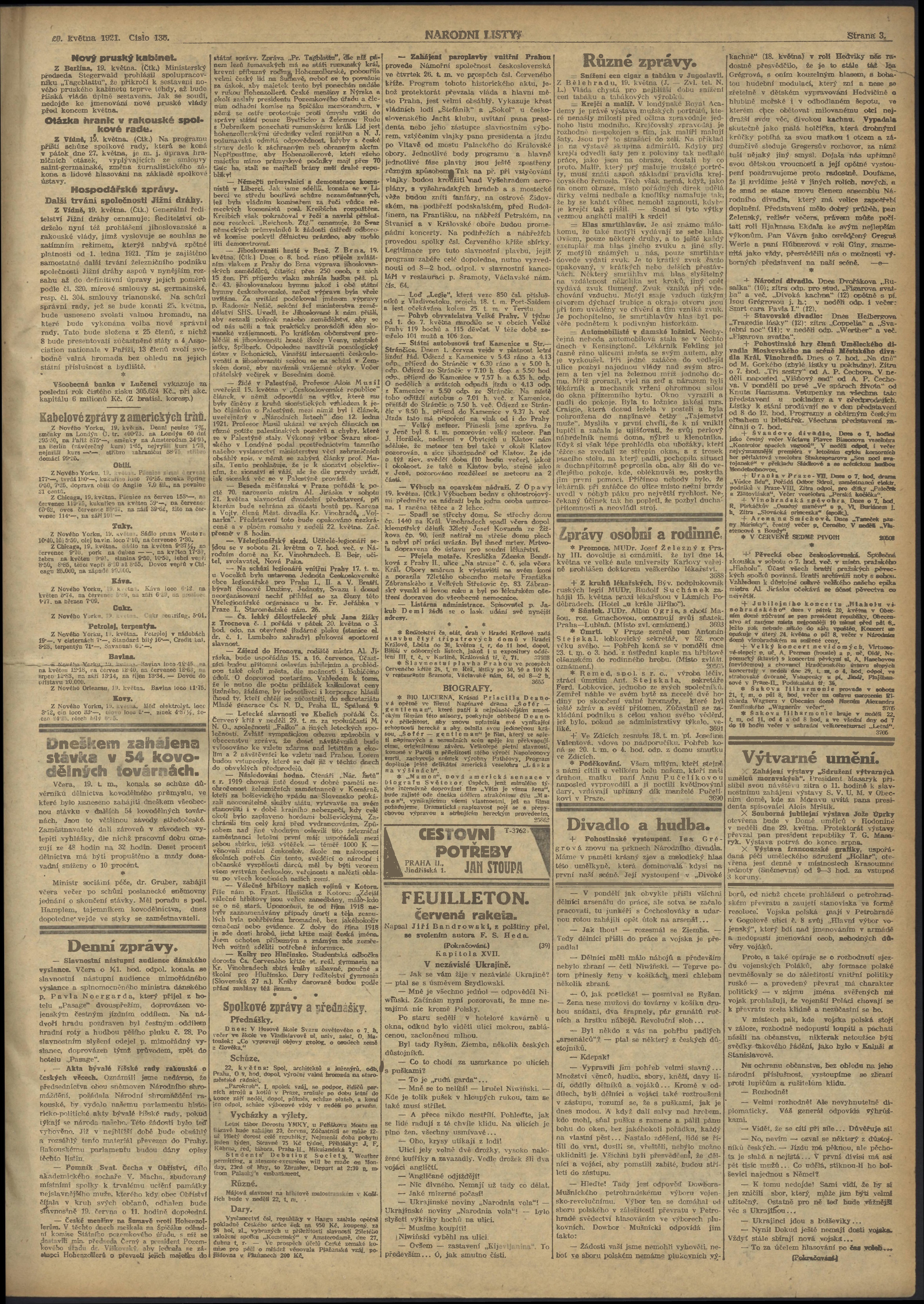 * Datum vydání výtisku: 20.5.1921 Číslo výtisku: 136 Poznámky k výtisku: ranní vydání;