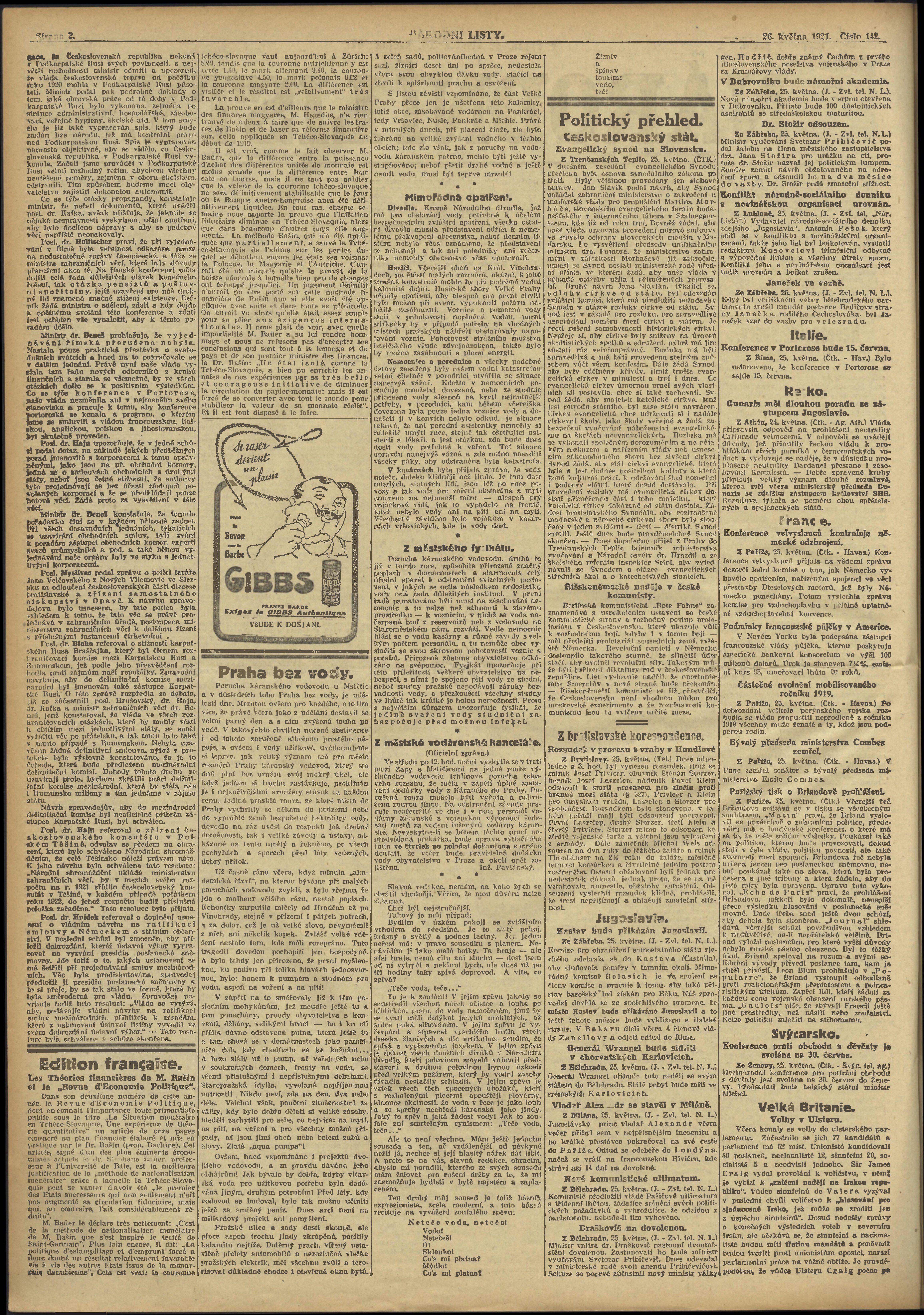 * Datum vydání výtisku: 26.5.1921 Číslo výtisku: 142 Poznámky k výtisku: ranní vydání;