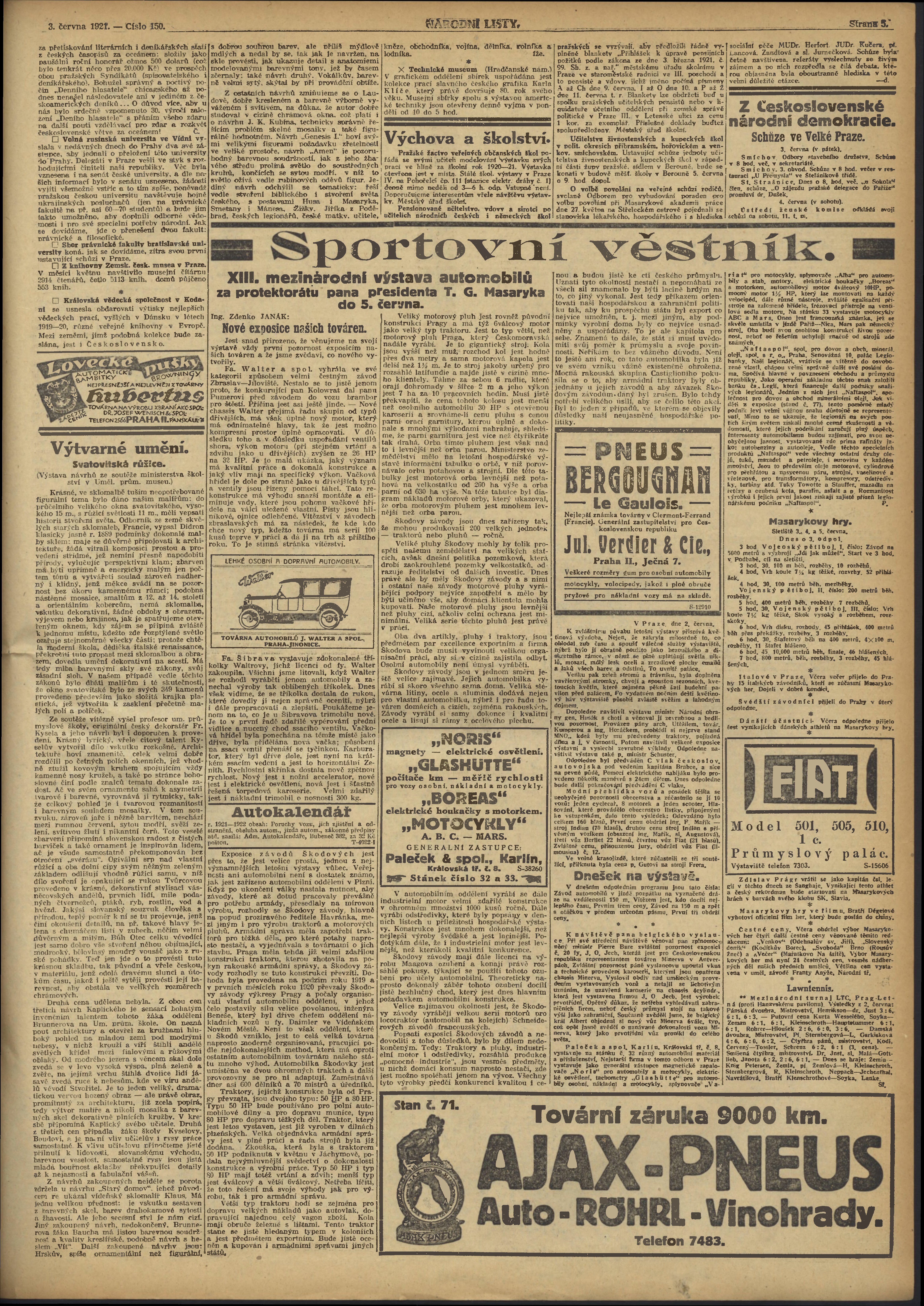 * Datum vydání výtisku: 3.6.1921 Číslo výtisku: 150 Poznámky k výtisku: ranní vydání;