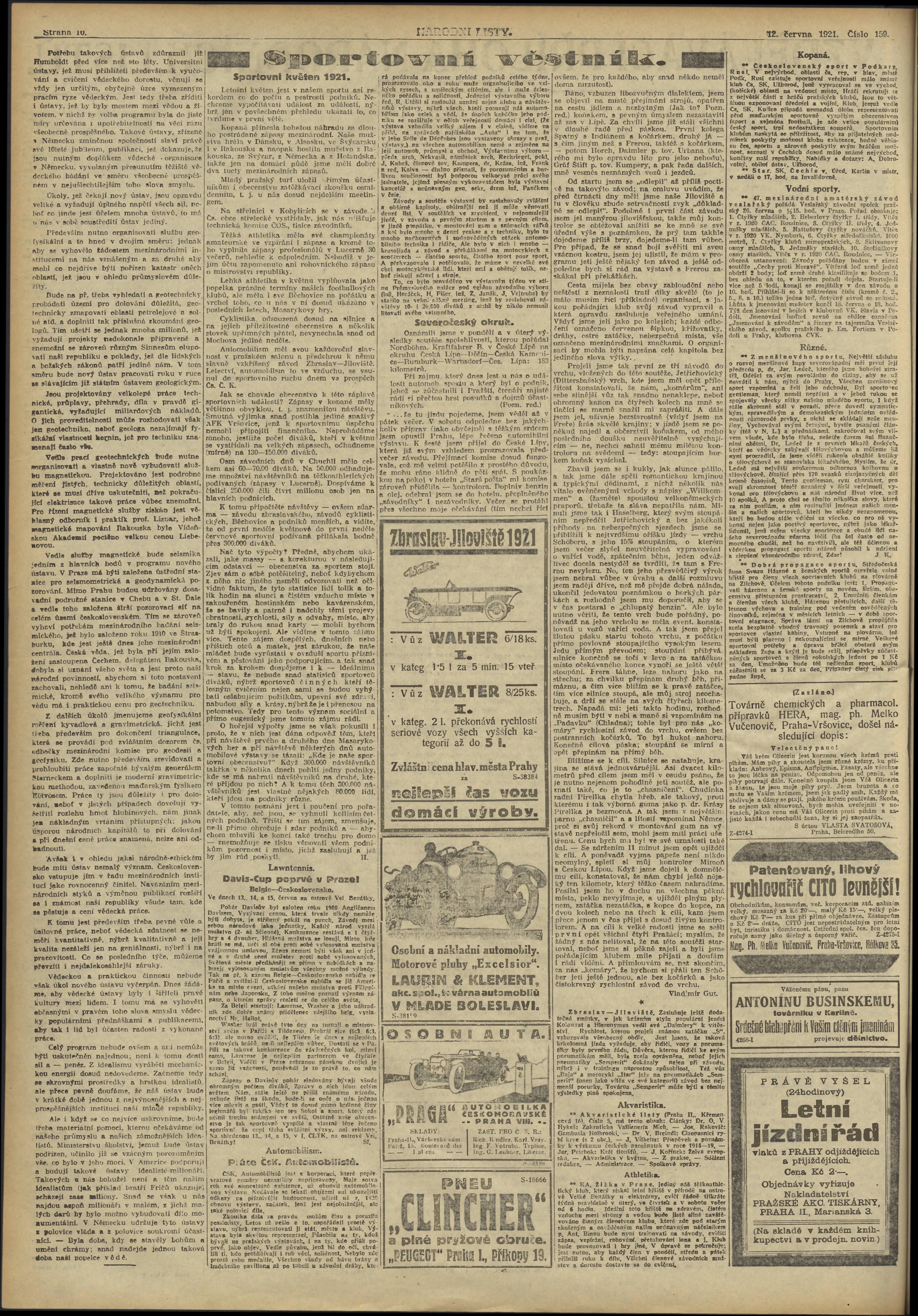* Datum vydání výtisku: 12.6.1921 Číslo výtisku: 159 Typ výtisku: příloha