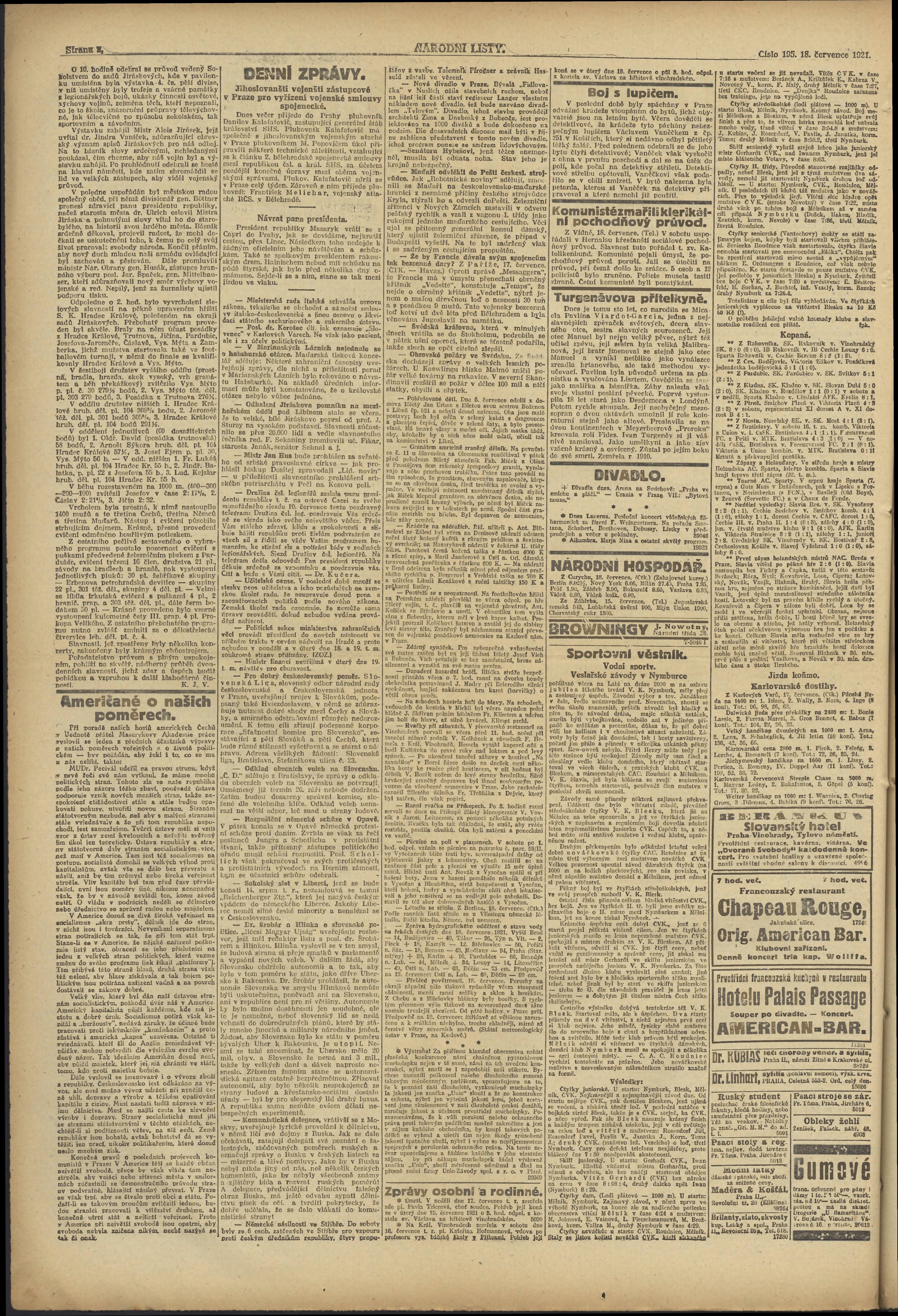 * Datum vydání výtisku: 18.7.1921 Číslo výtisku: 195 Poznámky k výtisku: večerní vydání;