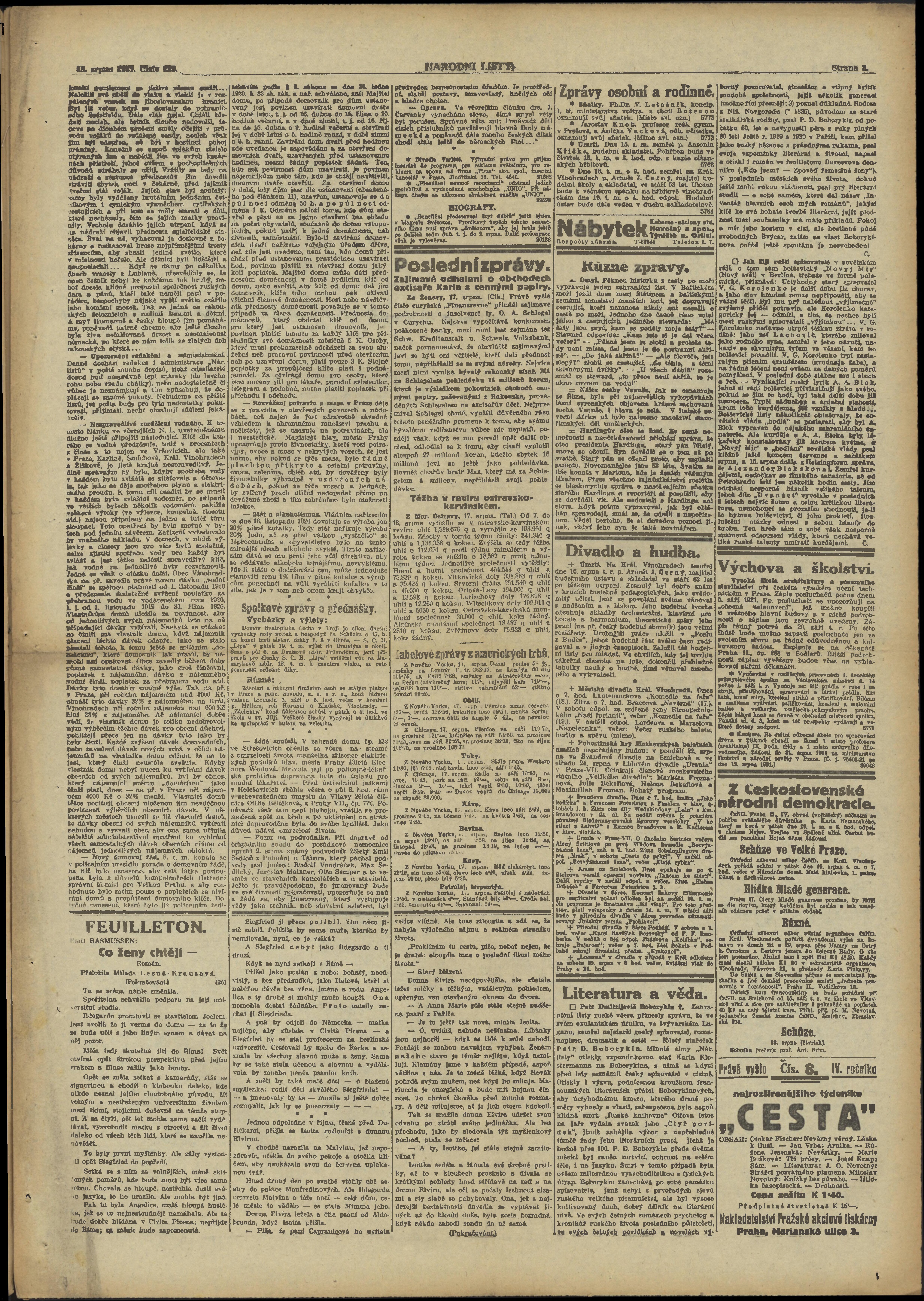 * Datum vydání výtisku: 18.8.1921 Číslo výtisku: 225 Poznámky k výtisku: ranní vydání;