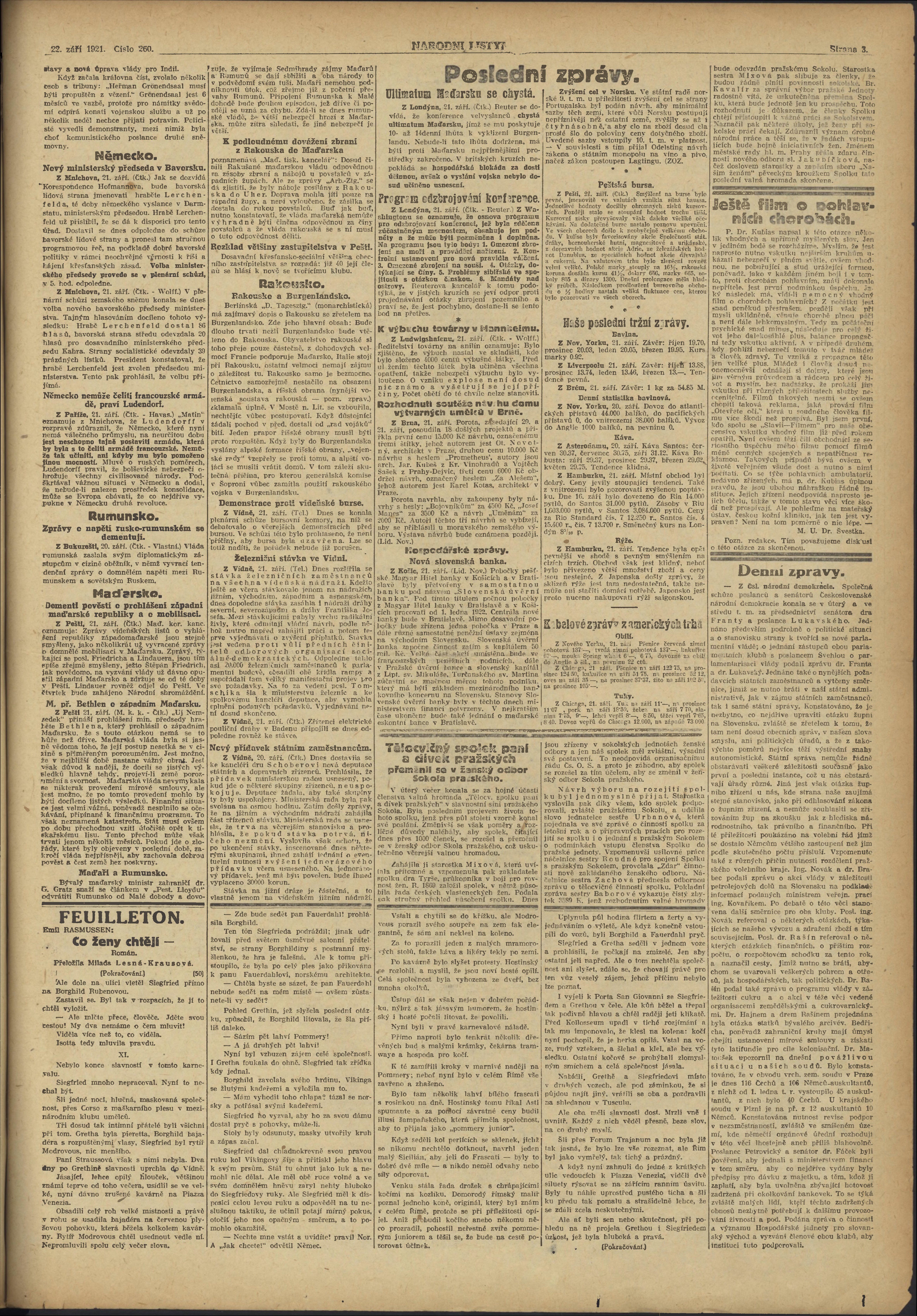 * Datum vydání výtisku: 22.9.1921 Číslo výtisku: 260 Poznámky k výtisku: ranní vydání;