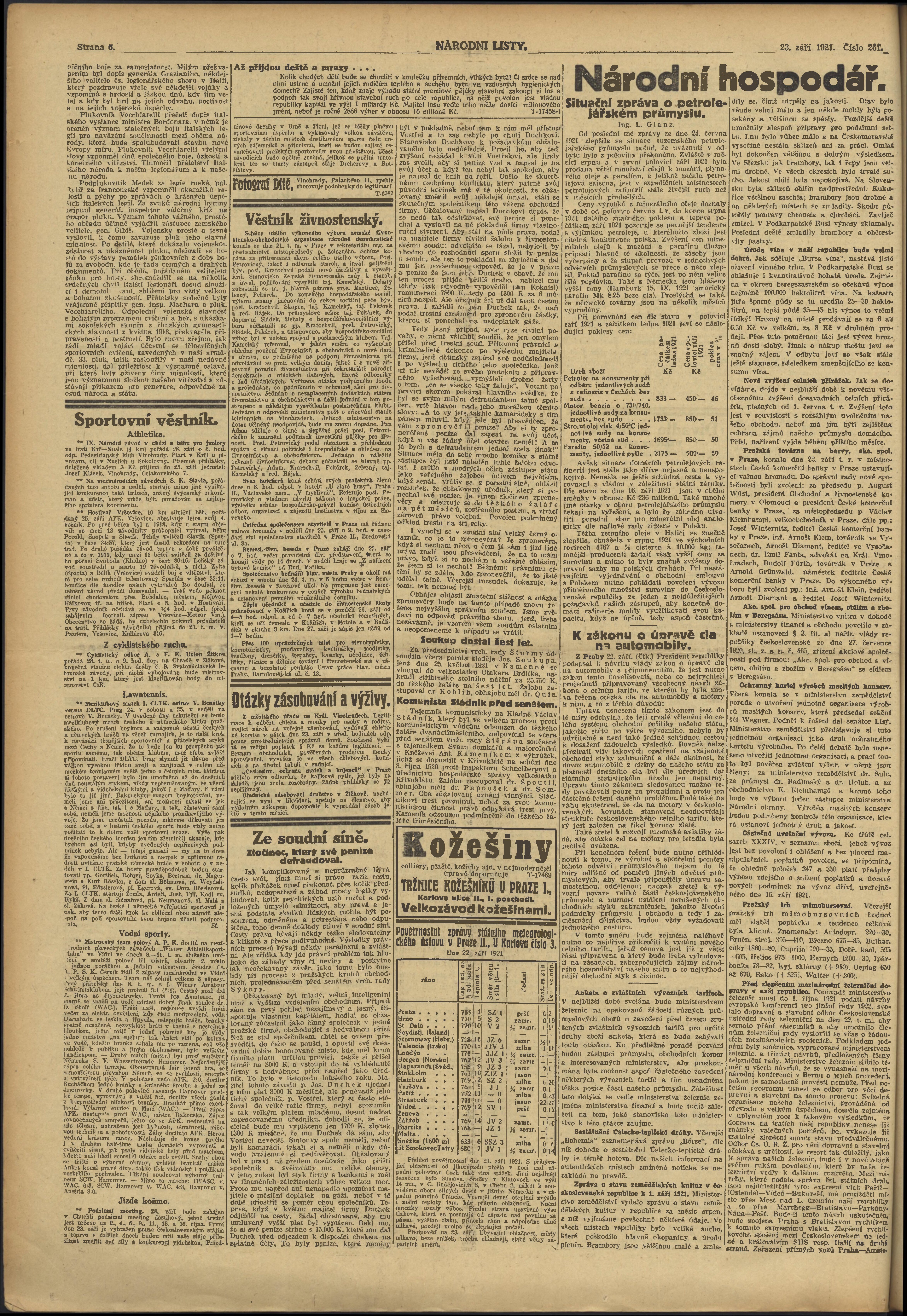 * Datum vydání výtisku: 23.9.1921 Číslo výtisku: 261 Poznámky k výtisku: ranní vydání;
