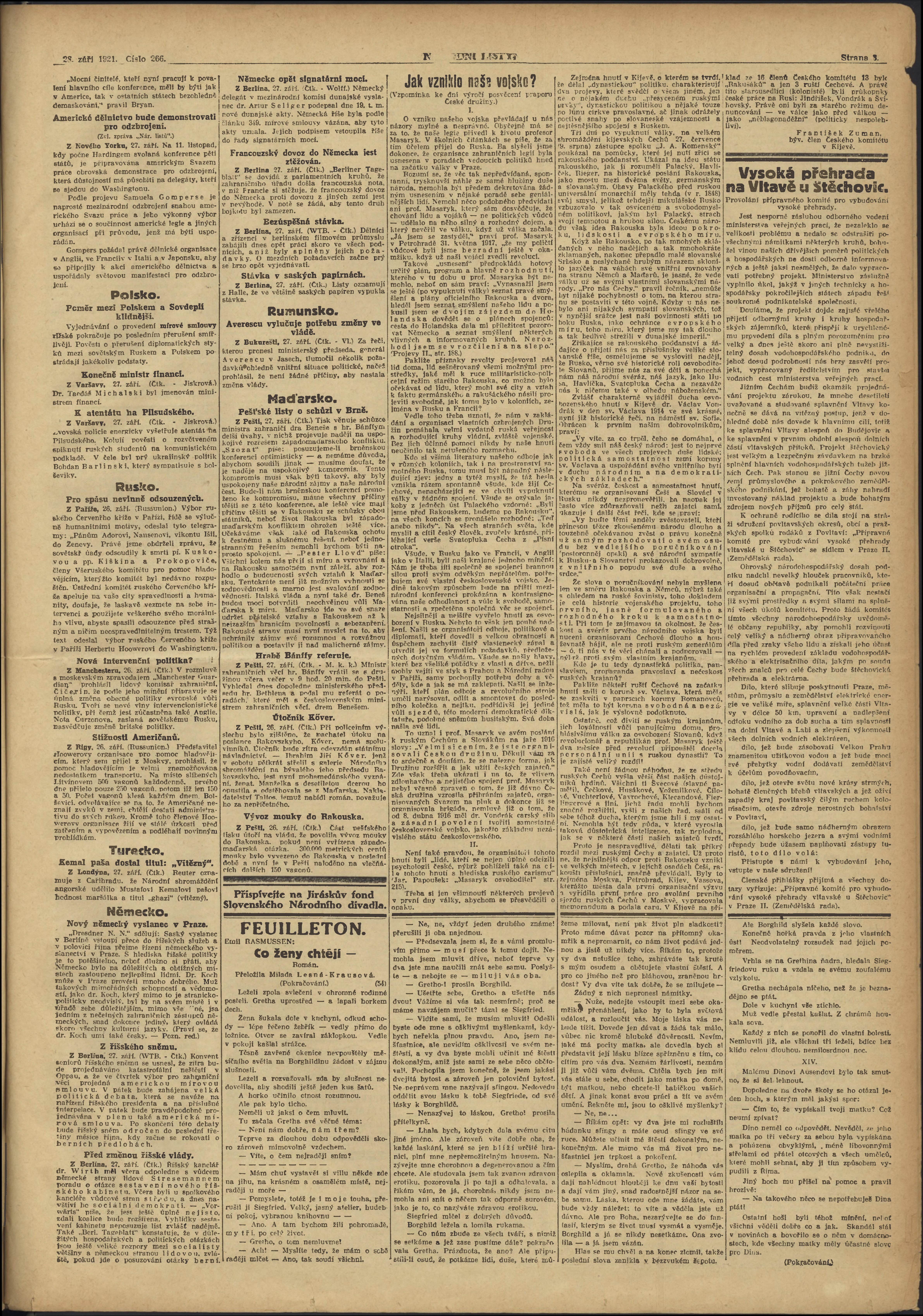 * Datum vydání výtisku: 28.9.1921 Číslo výtisku: 266 Poznámky k výtisku: ranní vydání;