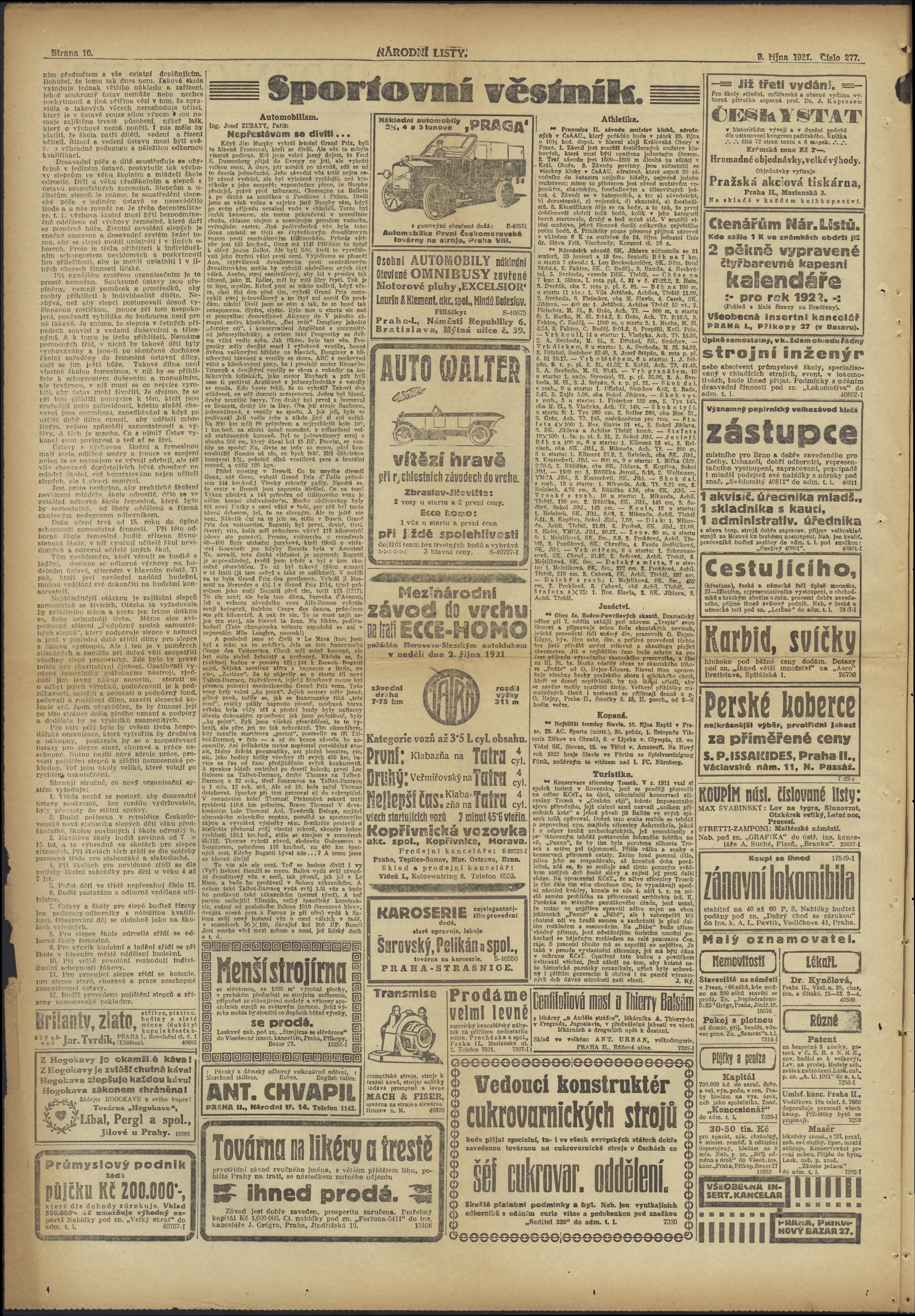 * Datum vydání výtisku: 9.10.1921 Číslo výtisku: 277 Typ výtisku: příloha