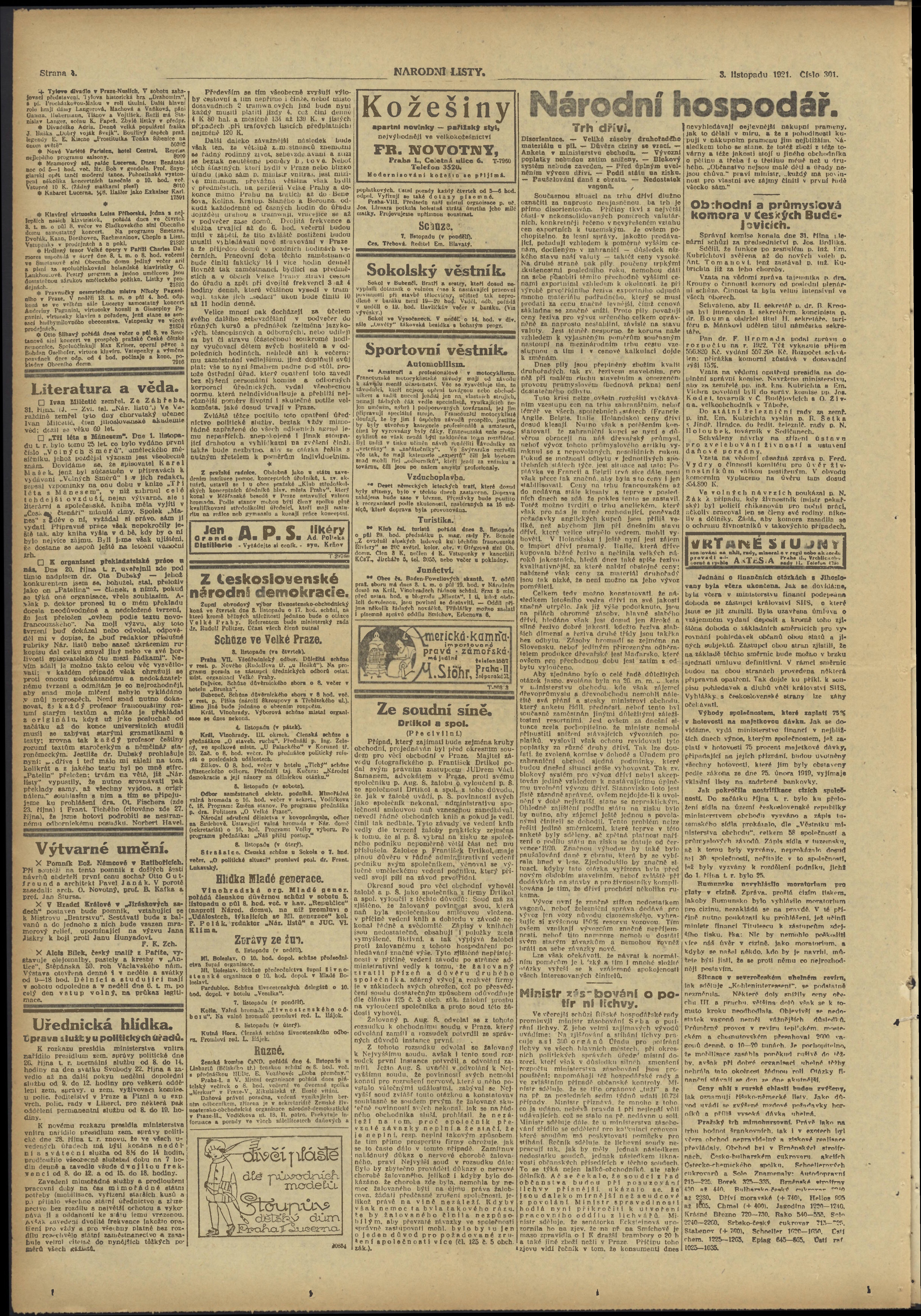 * Datum vydání výtisku: 3.11.1921 Číslo výtisku: 302 Poznámky k výtisku: ranní vydání;