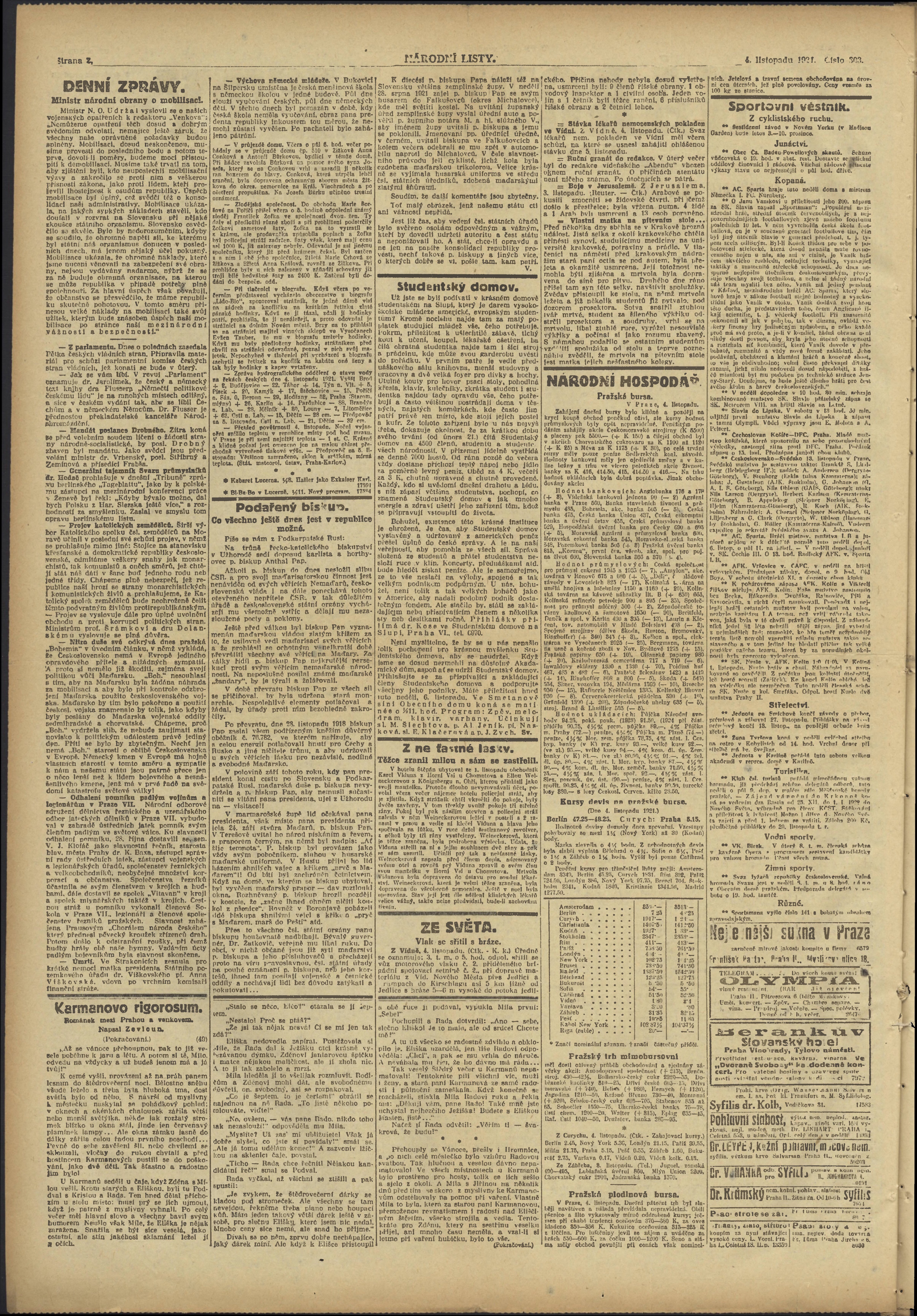 * Datum vydání výtisku: 4.11.1921 Číslo výtisku: 303 Poznámky k výtisku: večerní vydání;