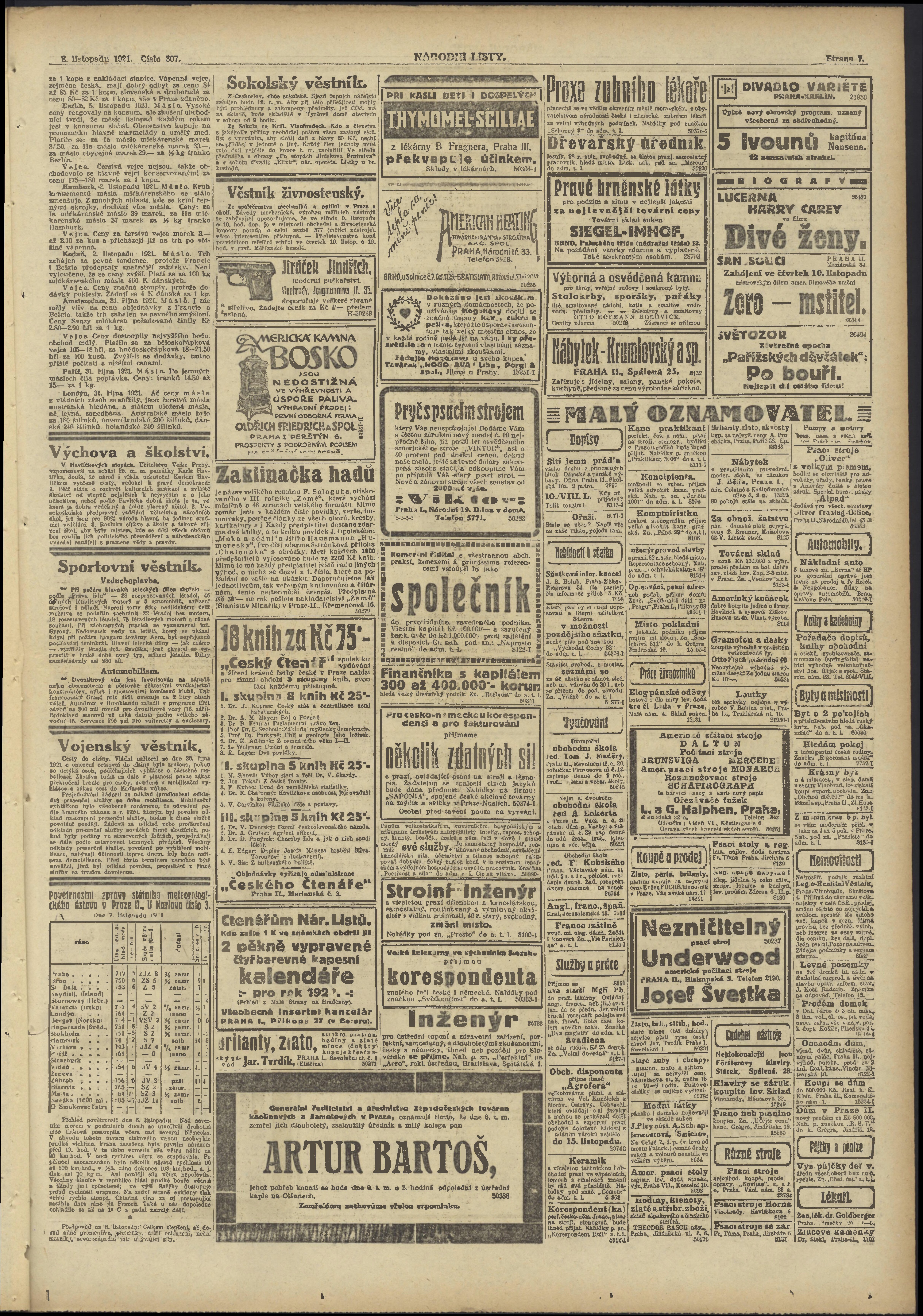 * Datum vydání výtisku: 8.11.1921 Číslo výtisku: 307 Poznámky k výtisku: ranní vydání;