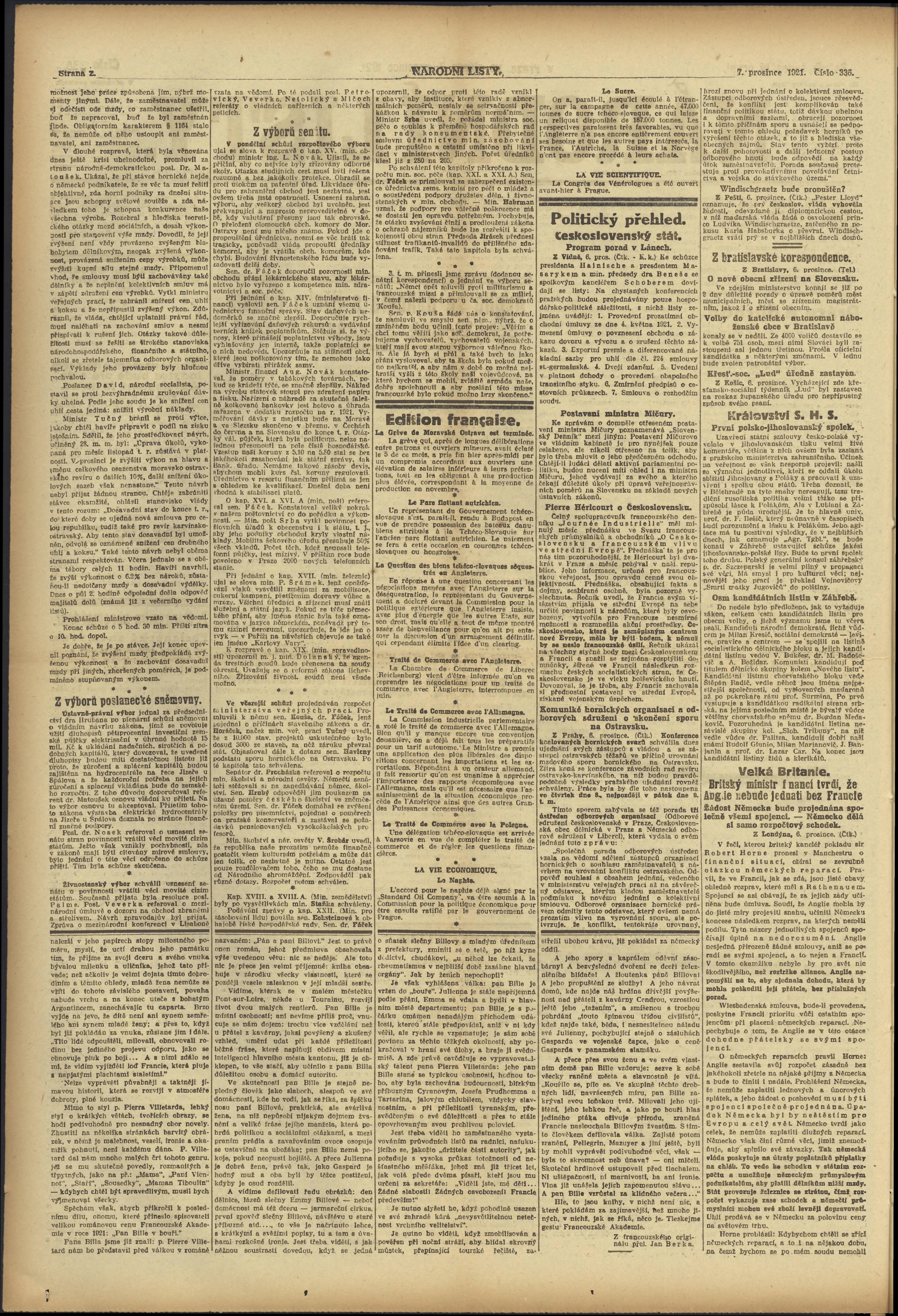 * Datum vydání výtisku: 7.12.1921 Číslo výtisku: 336 Poznámky k výtisku: ranní vydání;