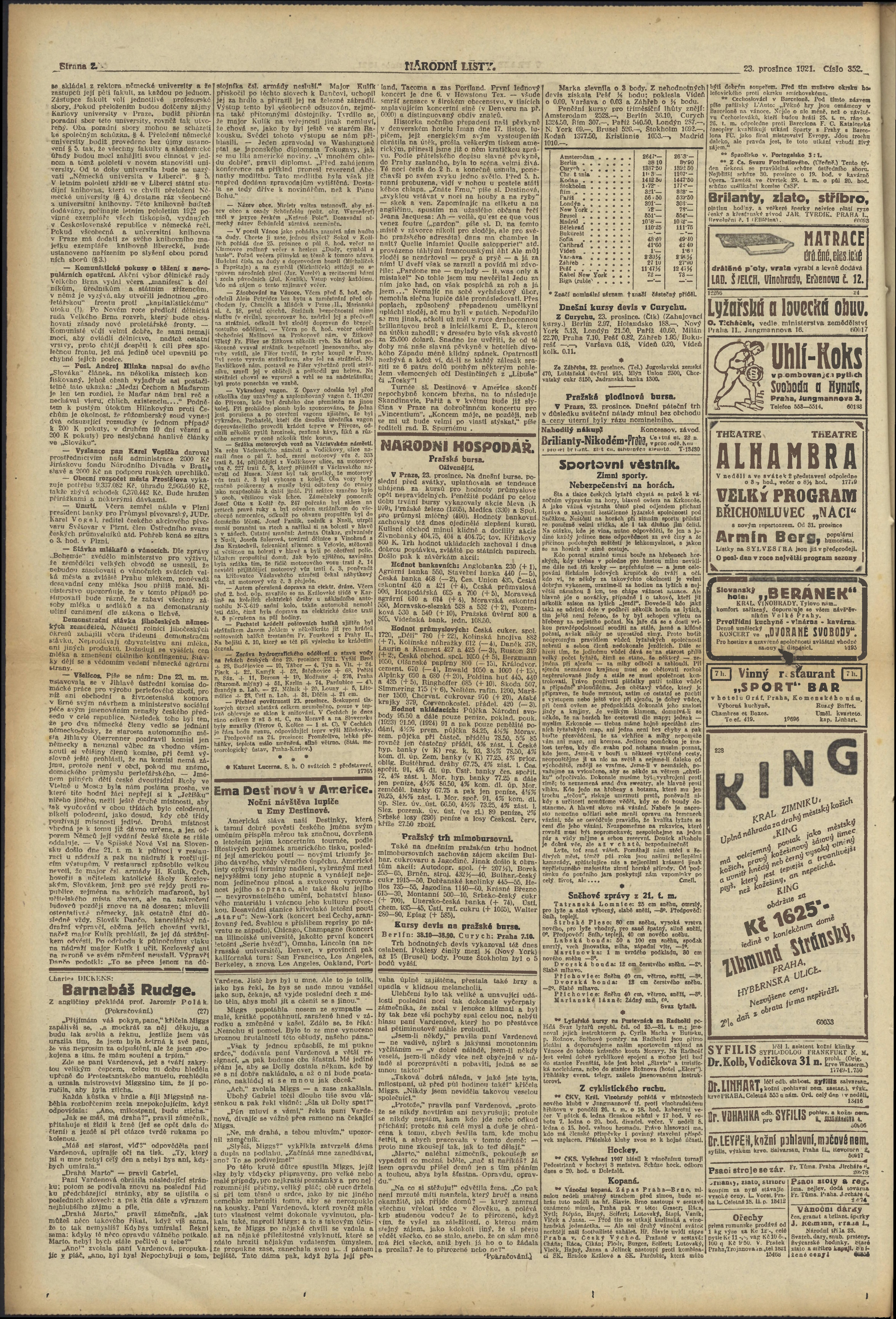 * Datum vydání výtisku: 23.12.1921 Číslo výtisku: 352 Poznámky k výtisku: večerní vydání;