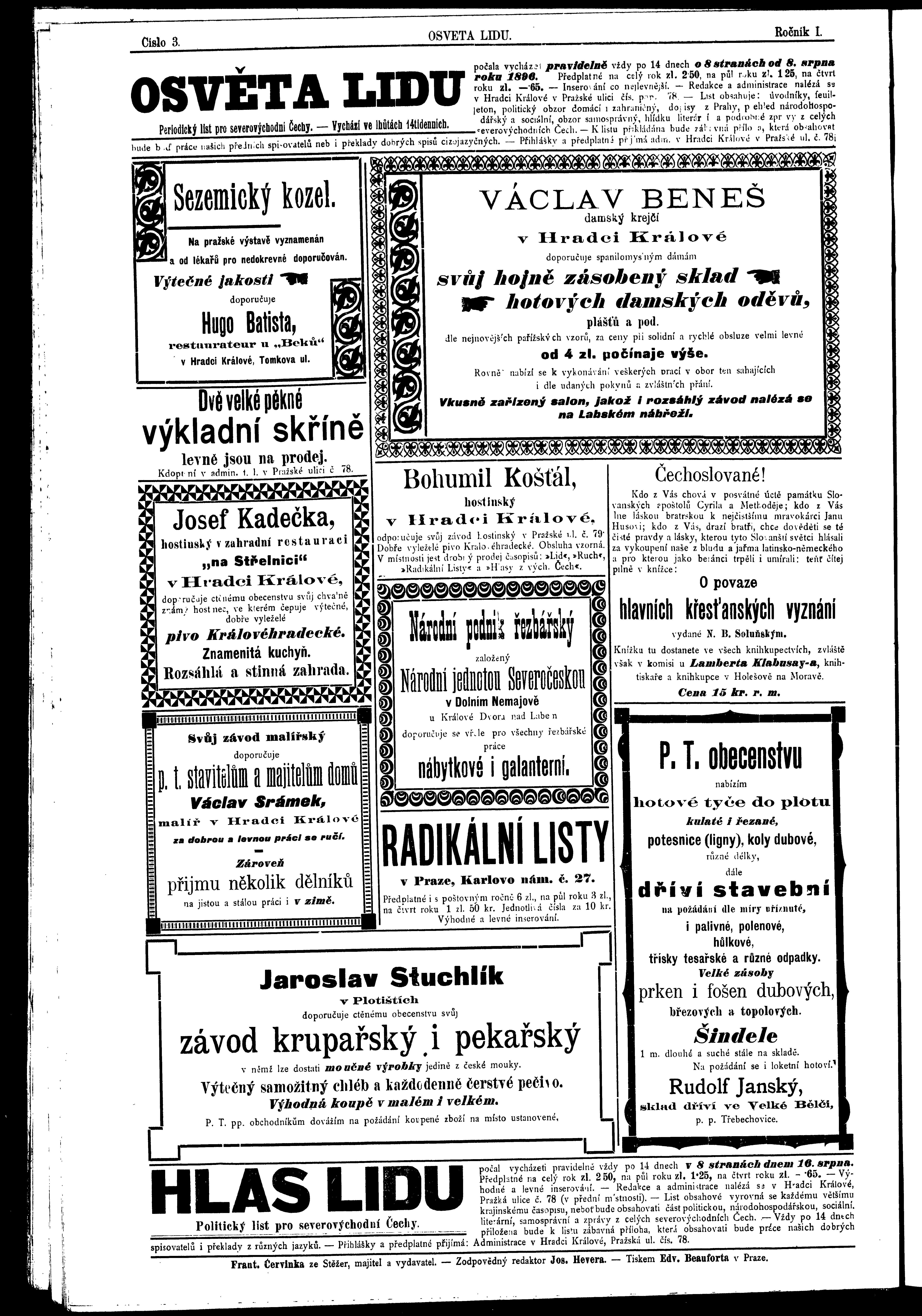 * Datum vydání výtisku: 4.9.1896 Číslo výtisku: 3 Poznámky k výtisku: ranní vydání