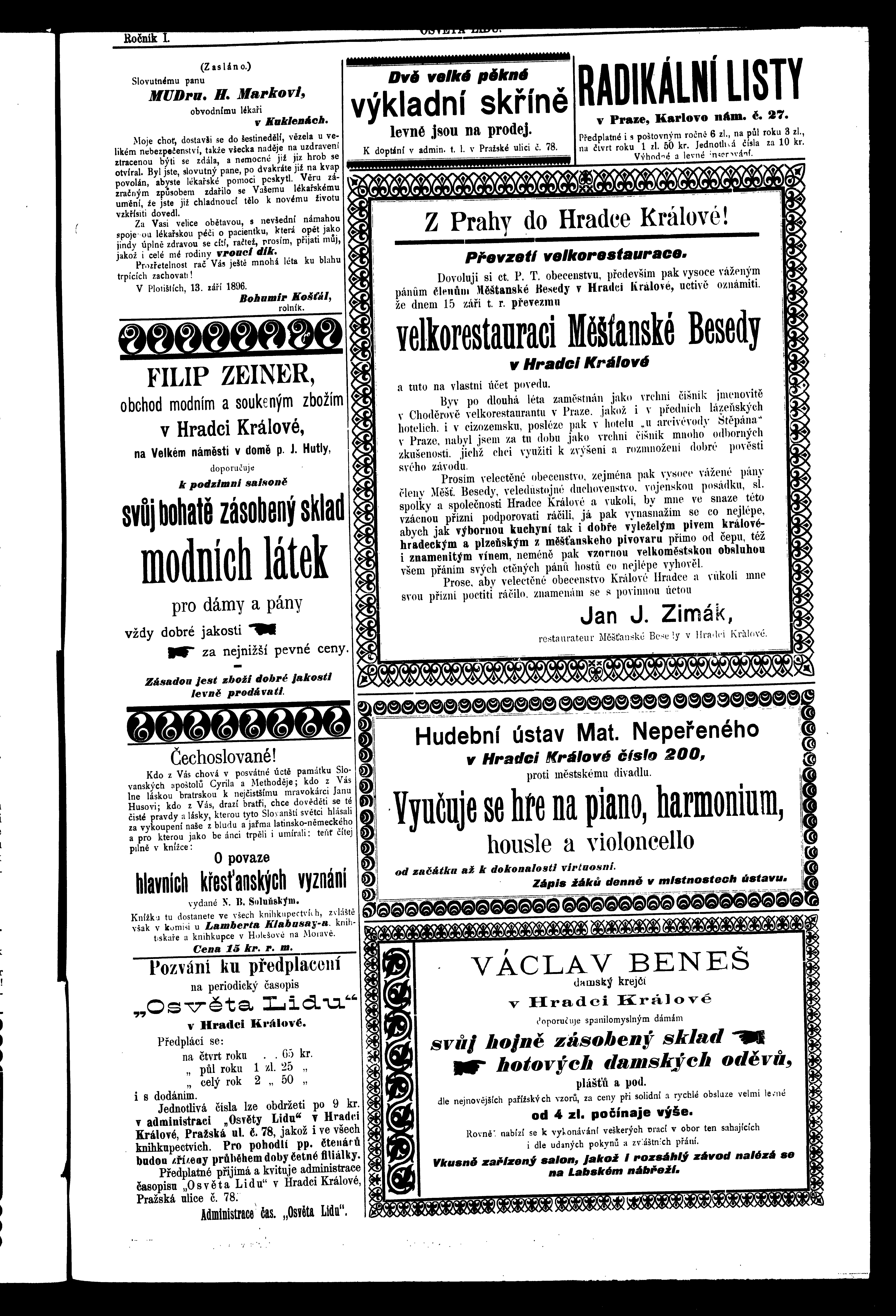* Datum vydání výtisku: 18.9.1896 Číslo výtisku: 4 Poznámky k výtisku: ranní vydání
