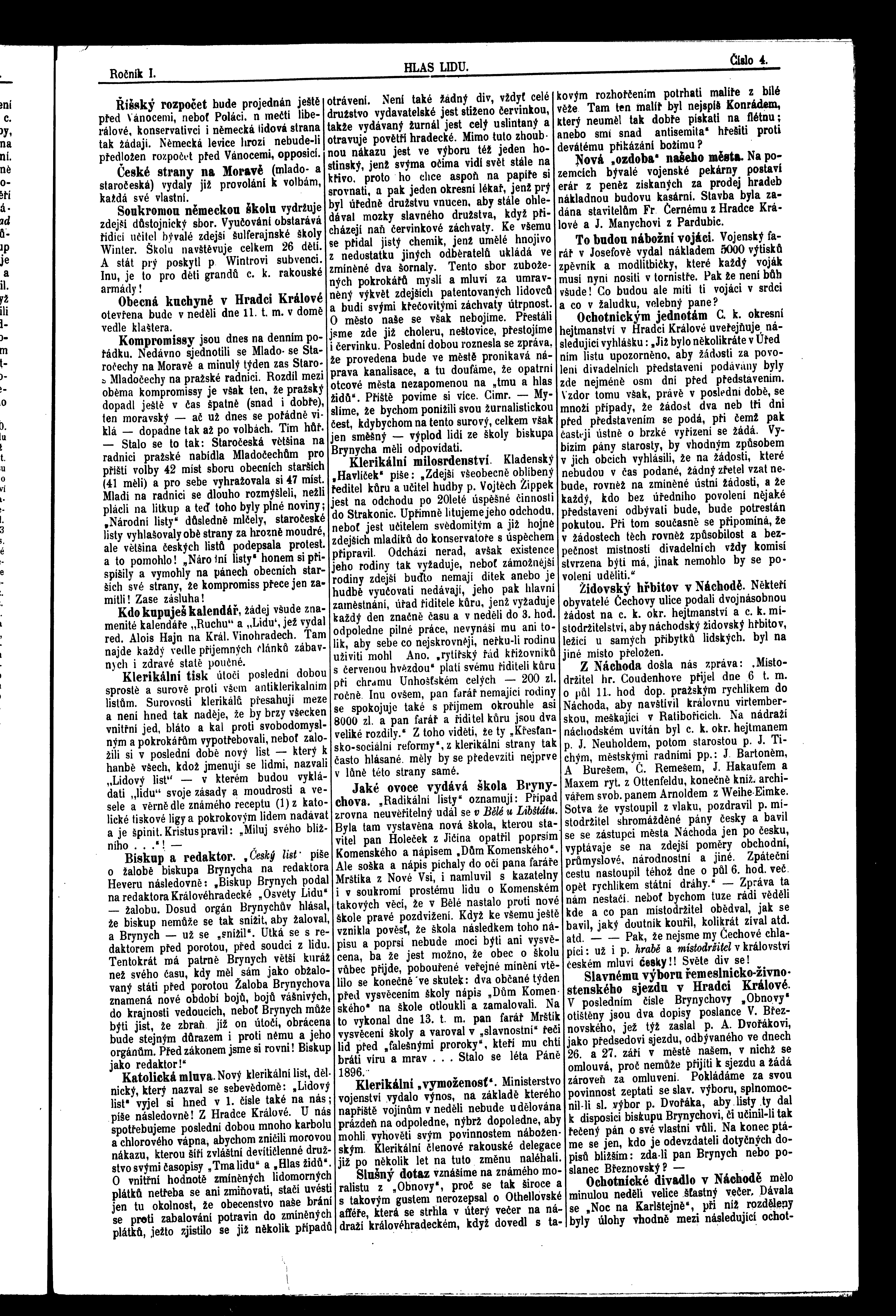 * Datum vydání výtisku: 10.10.1896 Číslo výtisku: 4 Poznámky k výtisku: ranní vydání