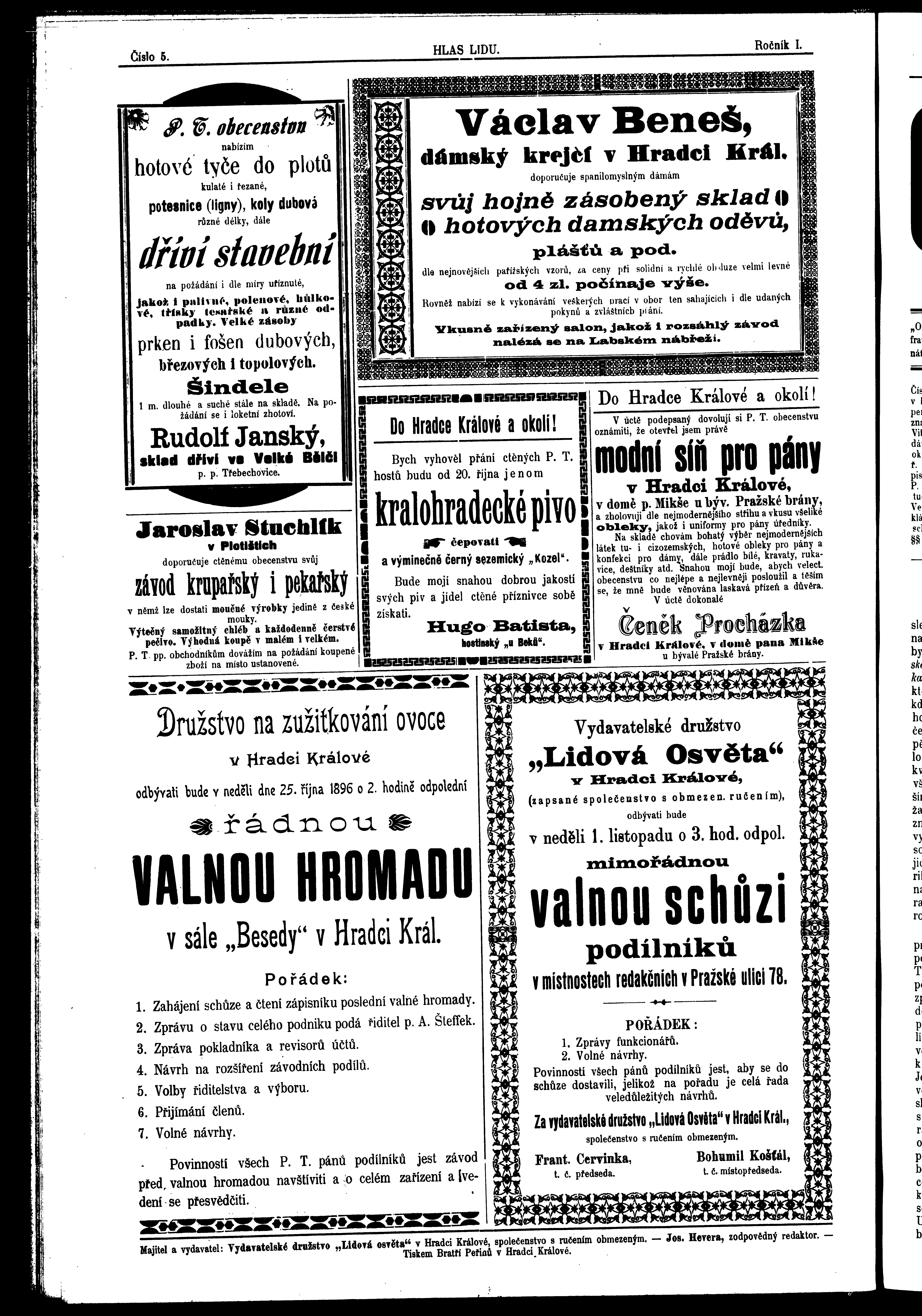 * Datum vydání výtisku: 23.10.1896 Číslo výtisku: 5 Poznámky k výtisku: ranní vydání