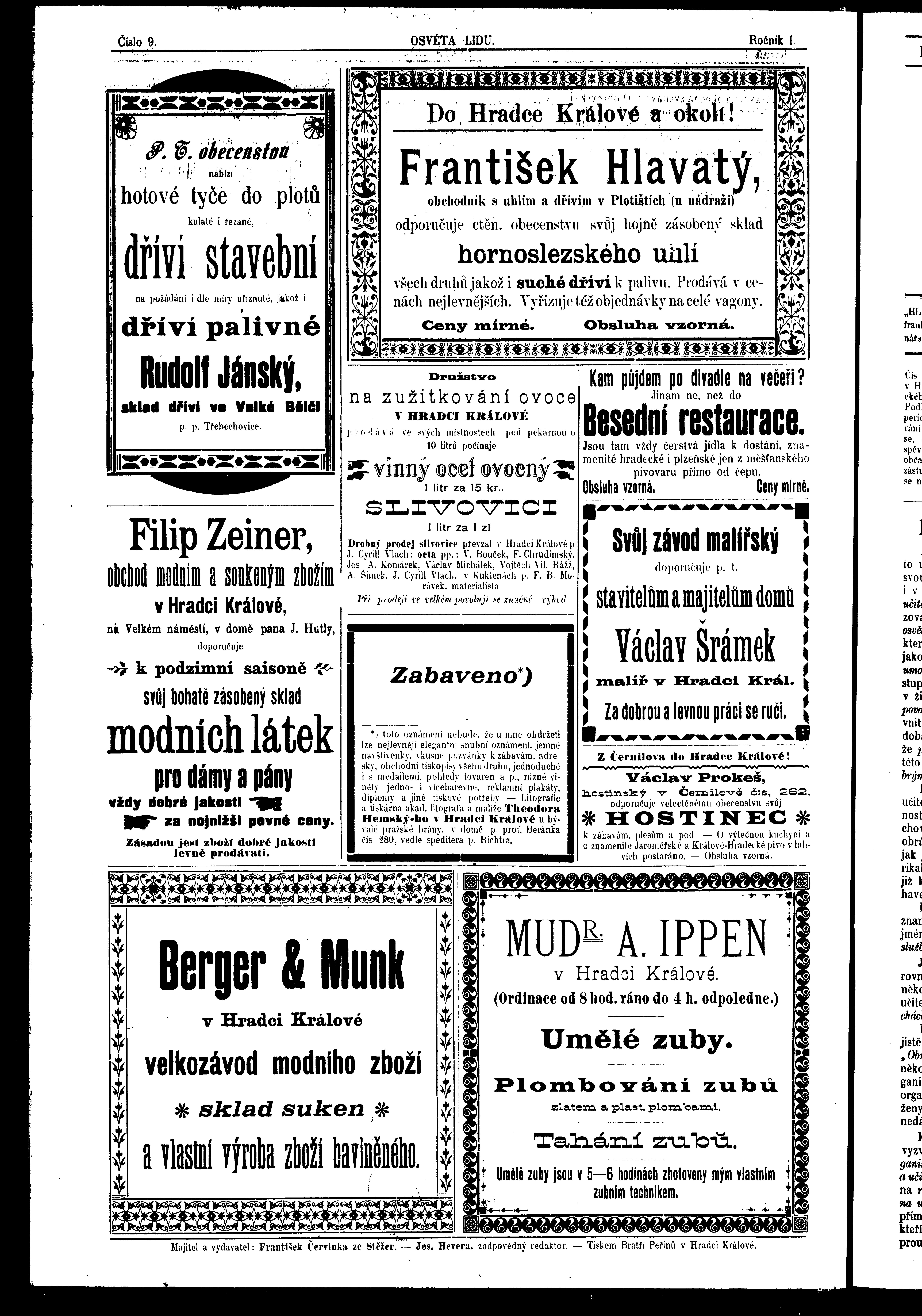 * Datum vydání výtisku: 27.11.1896 Číslo výtisku: 9 Poznámky k výtisku: ranní vydání
