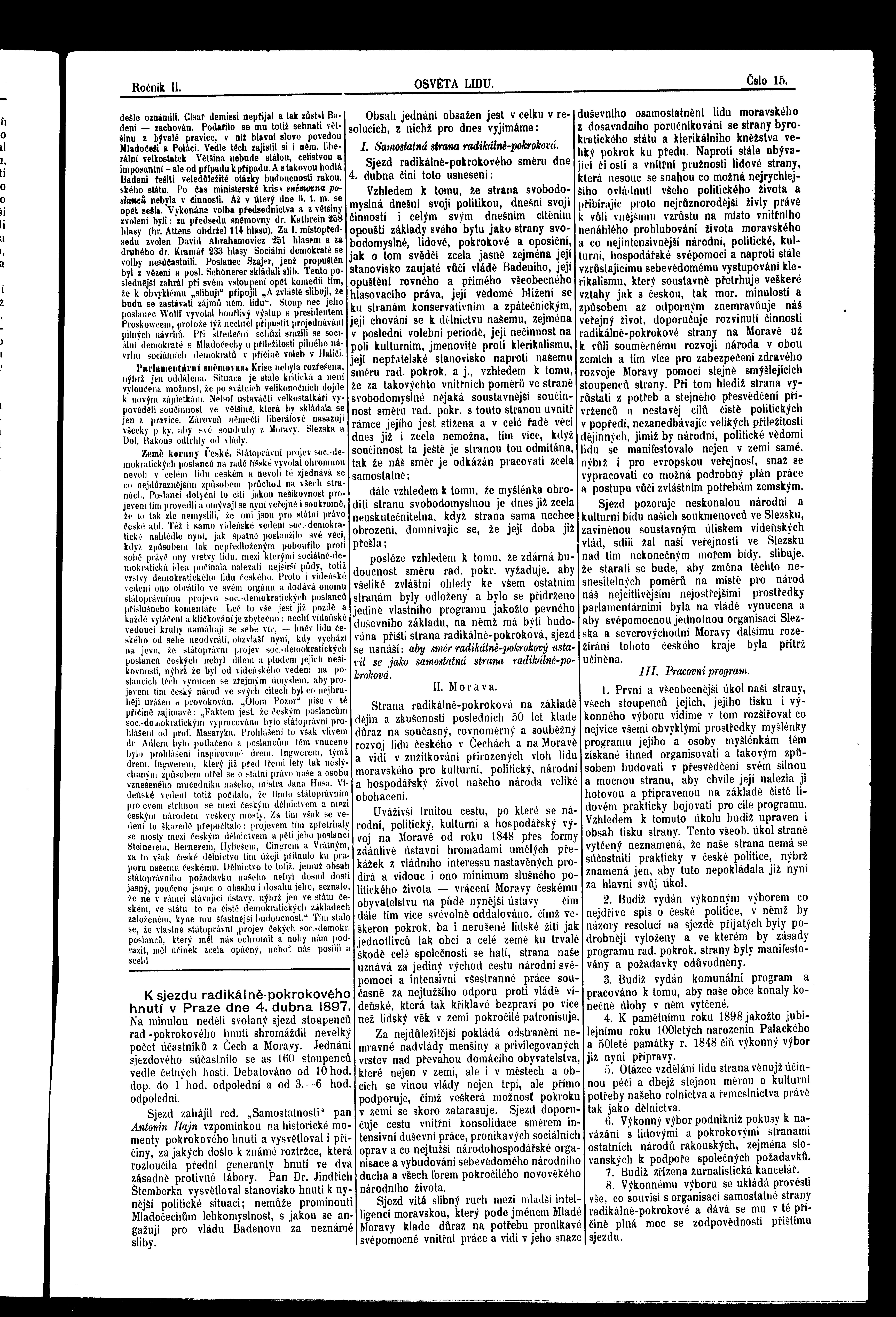 * Datum vydání výtisku: 10.4.1897 Číslo výtisku: 15 Poznámky k výtisku: ranní vydání