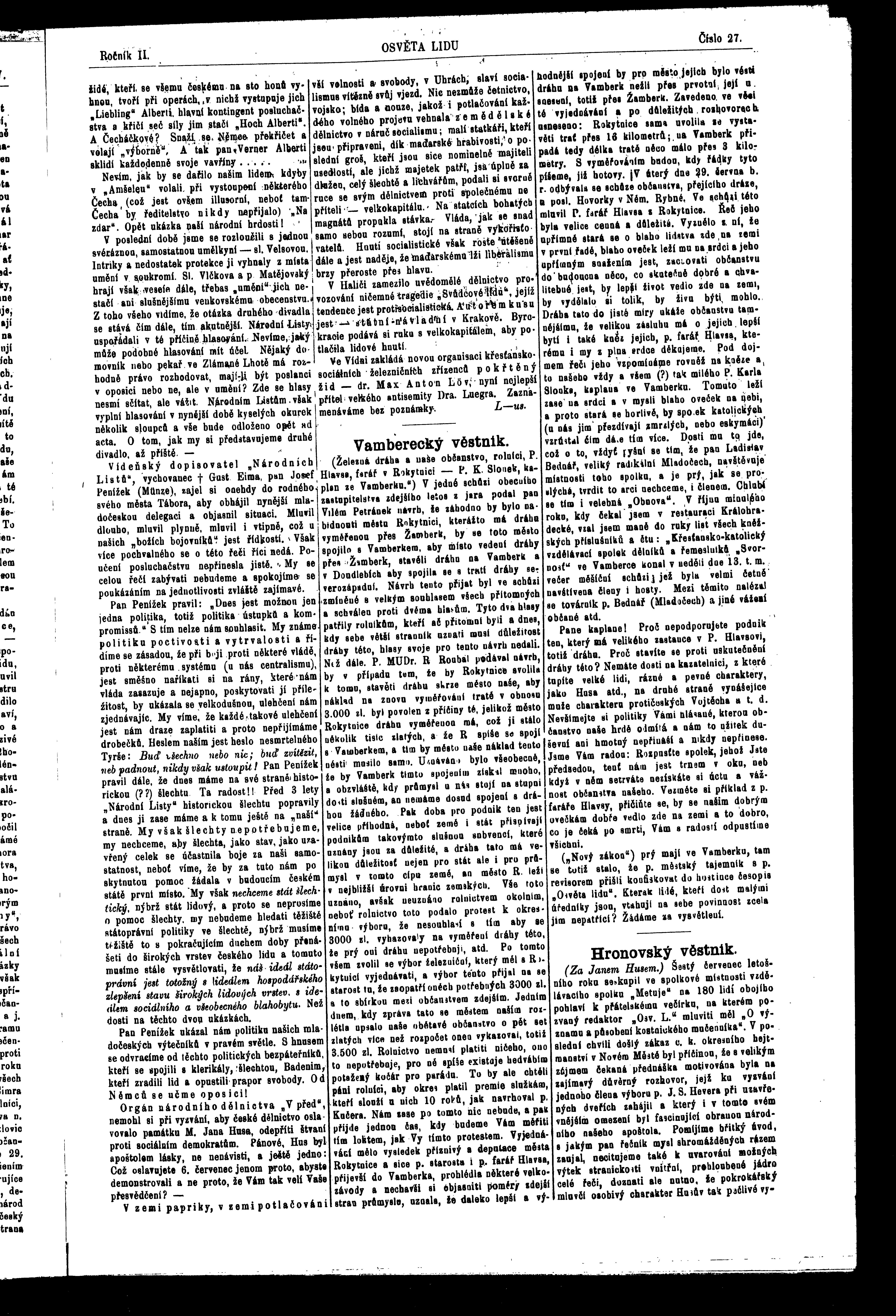* Datum vydání výtisku: 10.7.1897 Číslo výtisku: 27 Poznámky k výtisku: ranní vydání