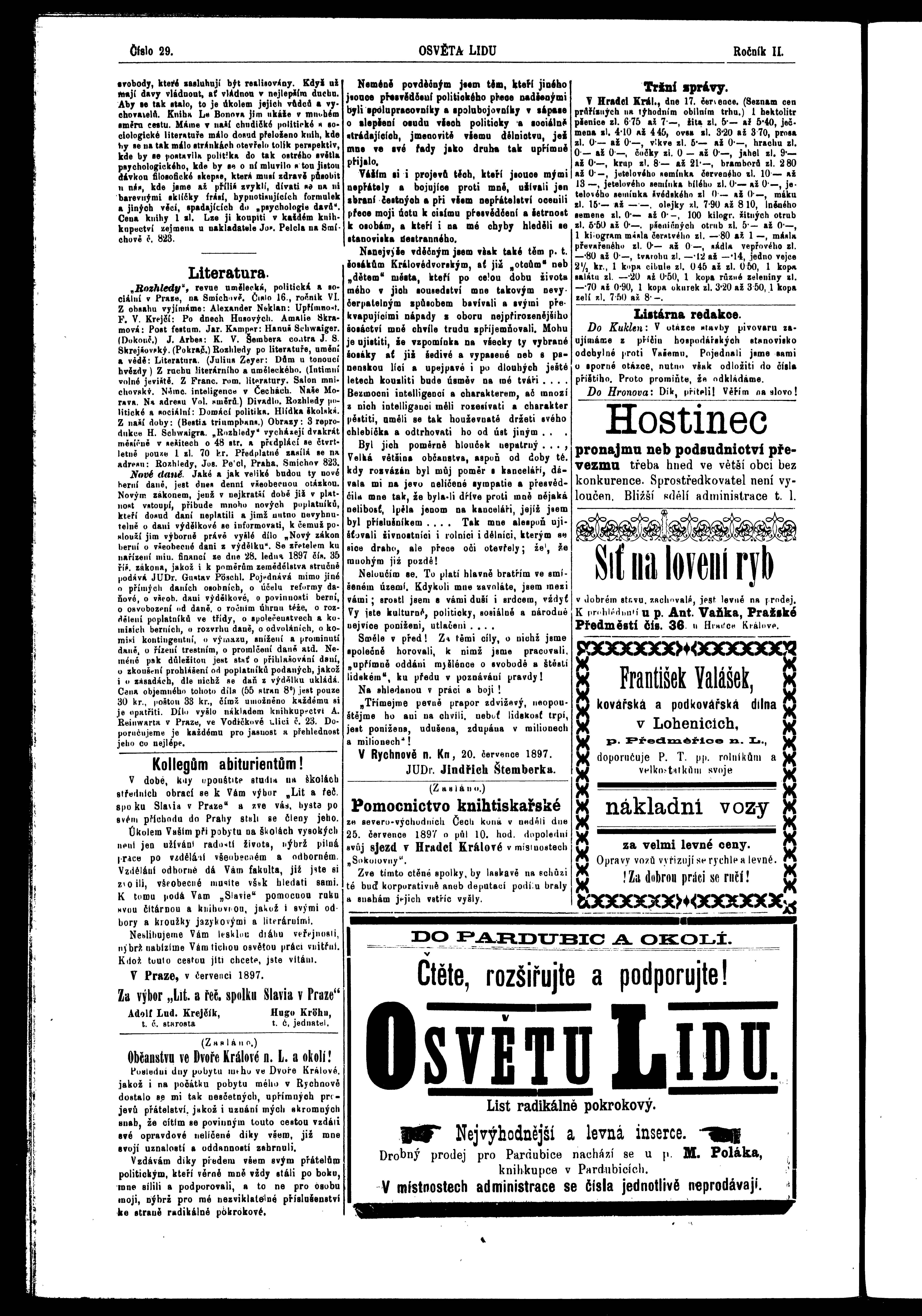 * Datum vydání výtisku: 24.7.1897 Číslo výtisku: 29 Poznámky k výtisku: ranní vydání