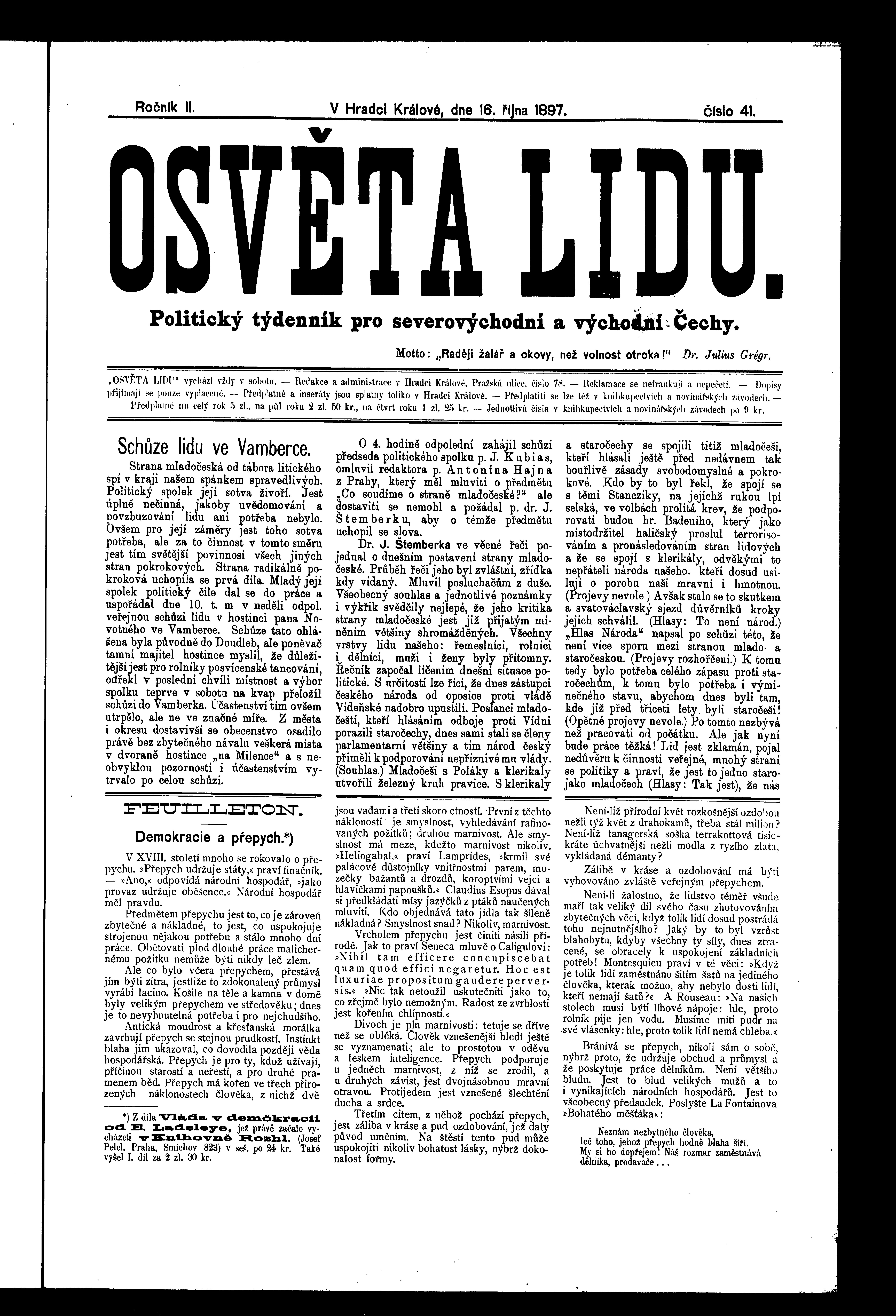 * Datum vydání výtisku: 16.10.1897 Číslo výtisku: 41 Poznámky k výtisku: ranní vydání