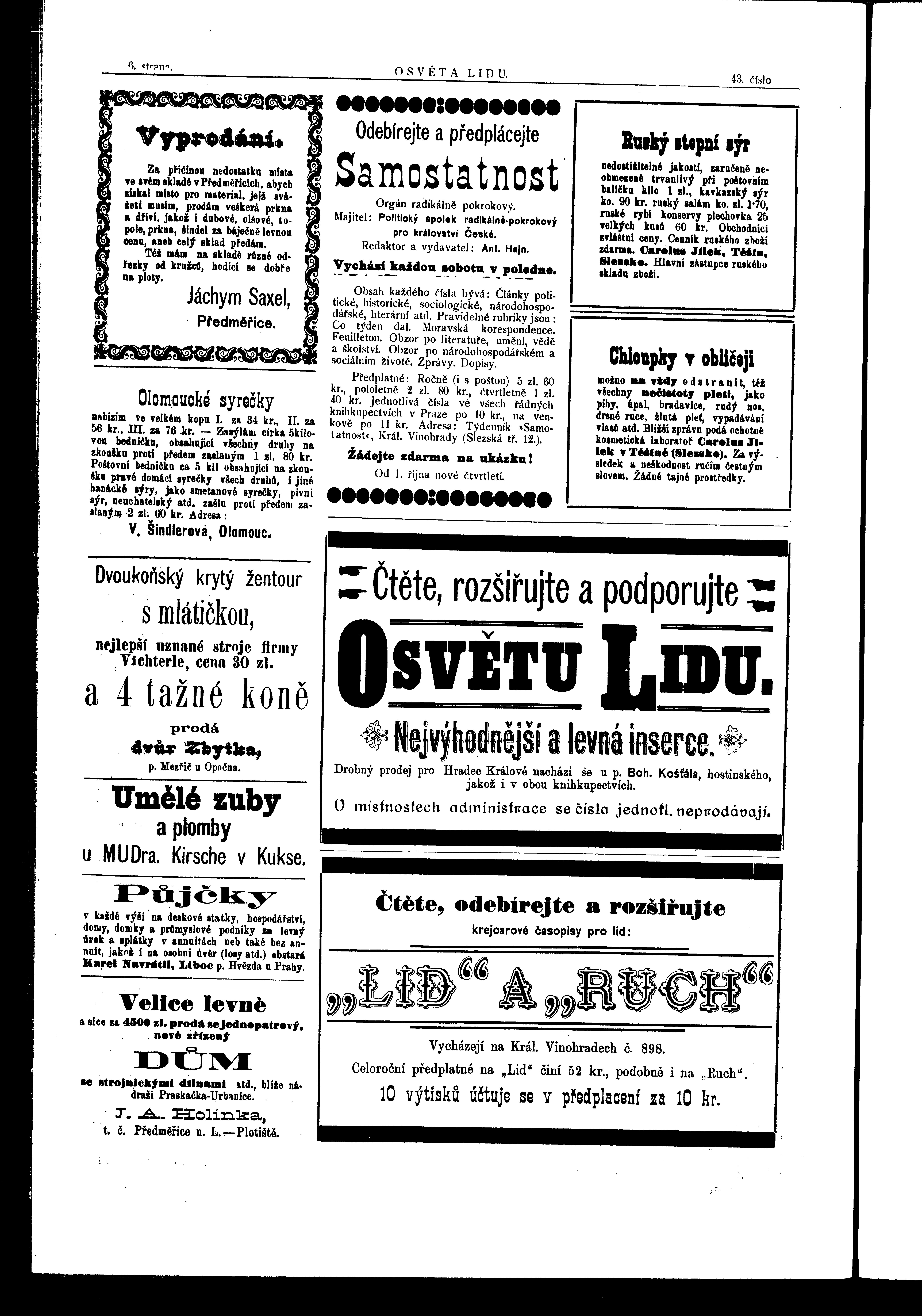 * Datum vydání výtisku: 30.10.1897 Číslo výtisku: 43 Poznámky k výtisku: ranní vydání