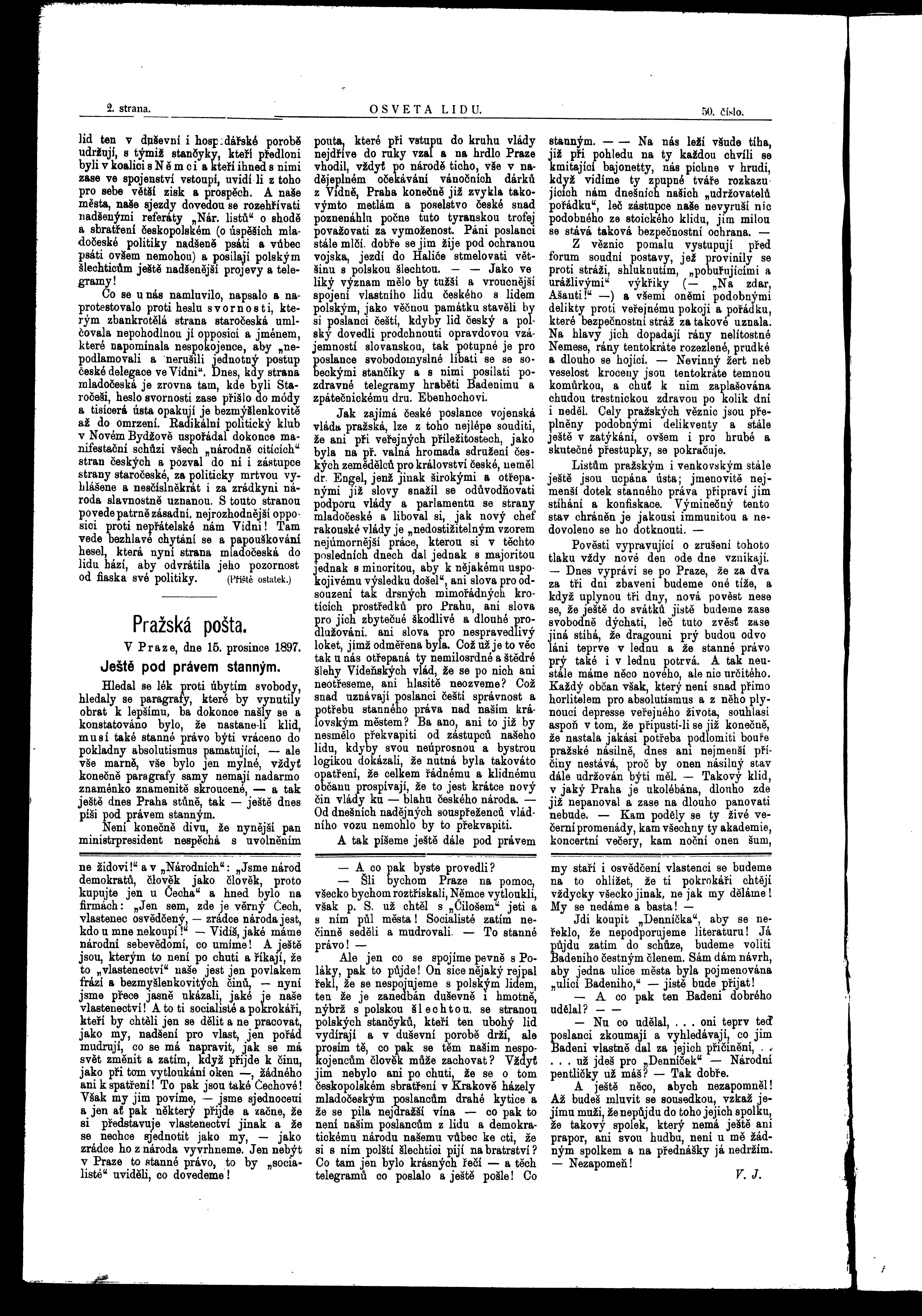 * Datum vydání výtisku: 18.12.1897 Číslo výtisku: 50 Poznámky k výtisku: ranní vydání